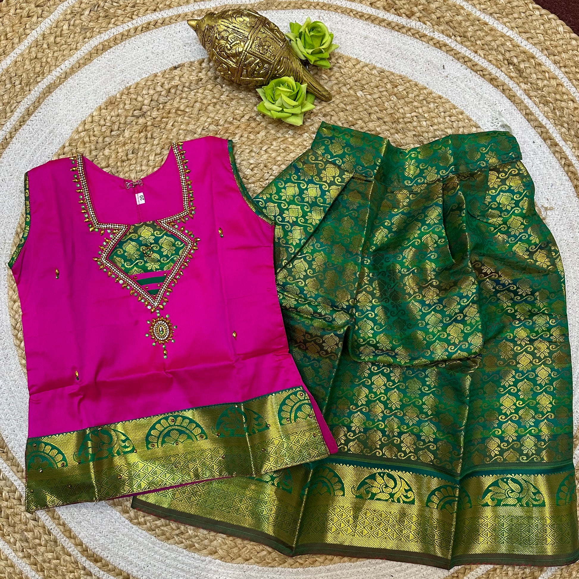 20”Size 2 Indian Lehenga Pattu Pavadai Sattai Skirt Top G17