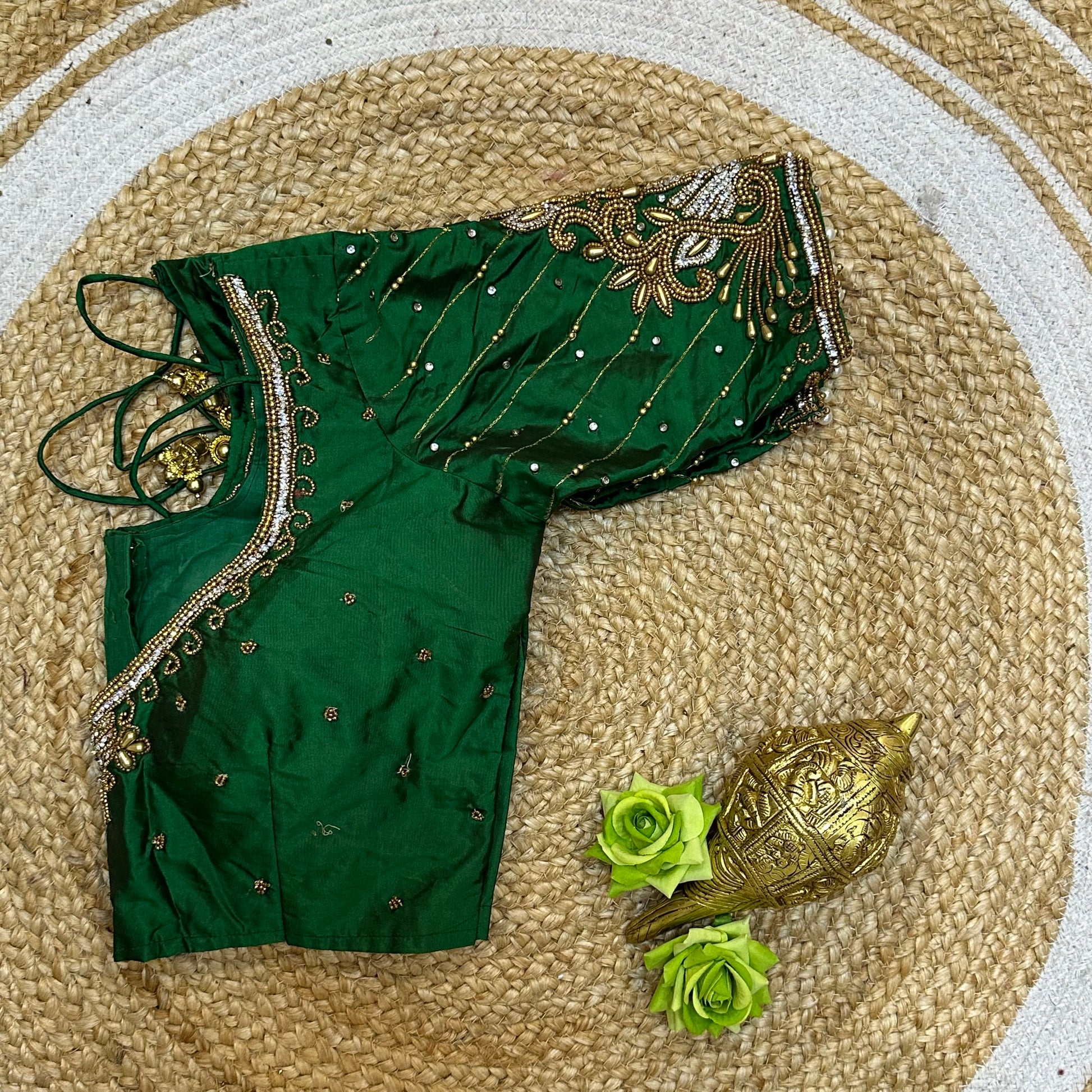 34” XSmall size Aari Worked Sari Blouse Indian Saree Top Green B269