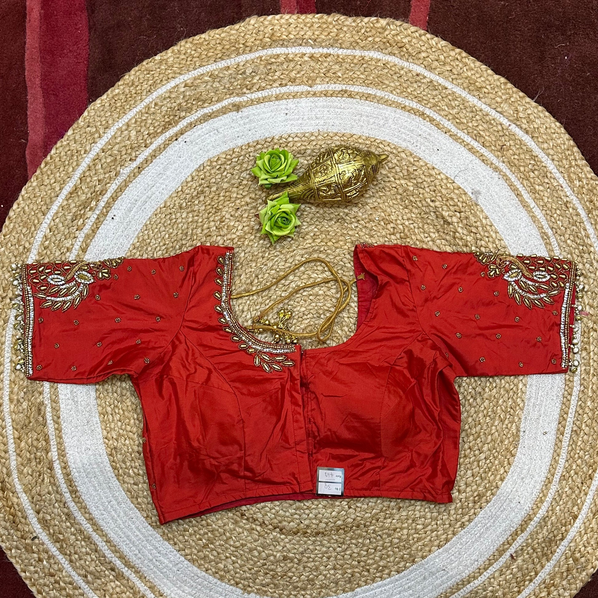 38” M Size 8 Aari Worked Sari Blouse Indian Saree Top Red B280
