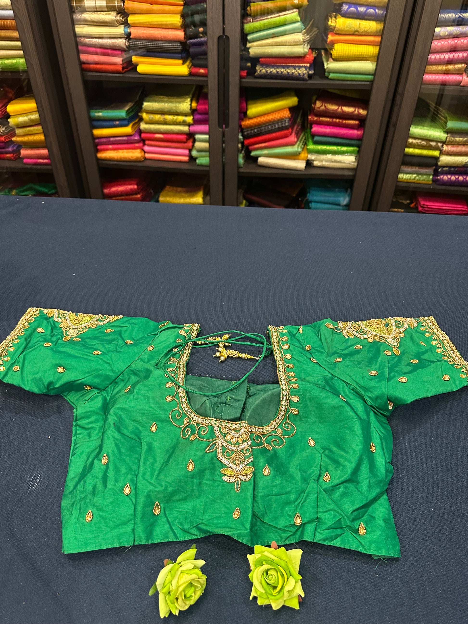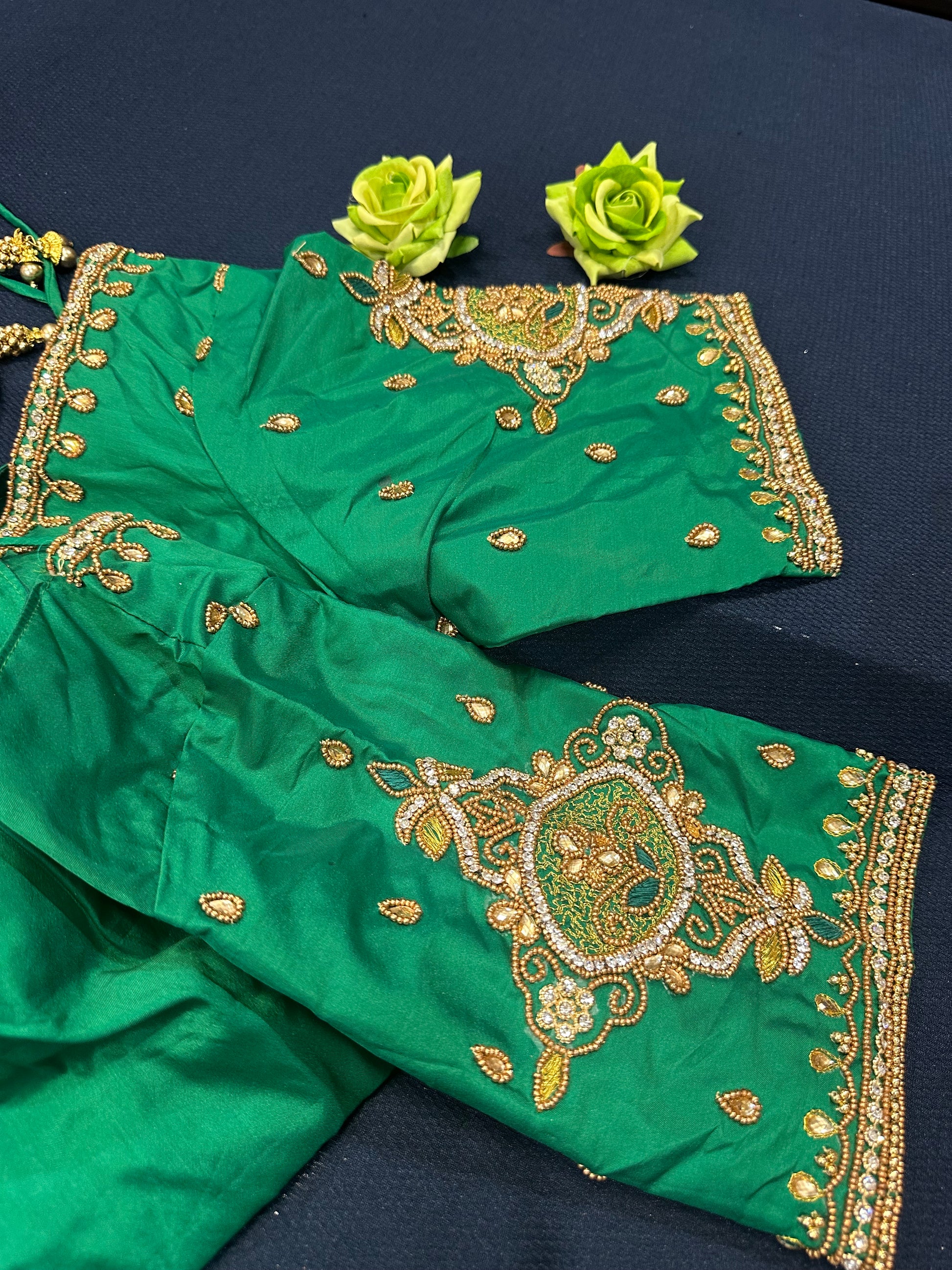 40” Aari hand Worked Sari Blouse Indian Top Choli Silk Green B5