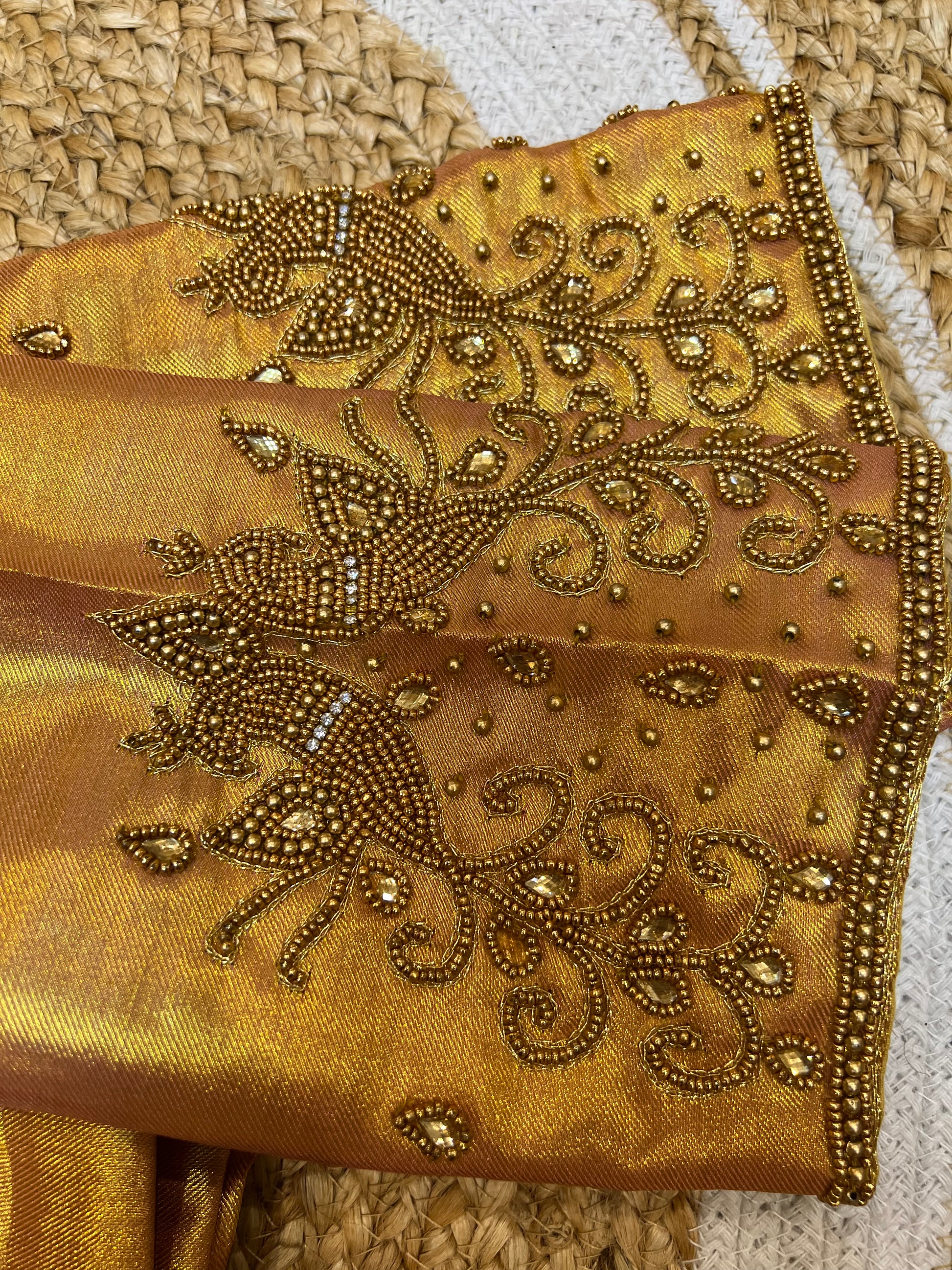40” Aari hand Worked Sari Blouse Indian Top Choli Silk Gold B45