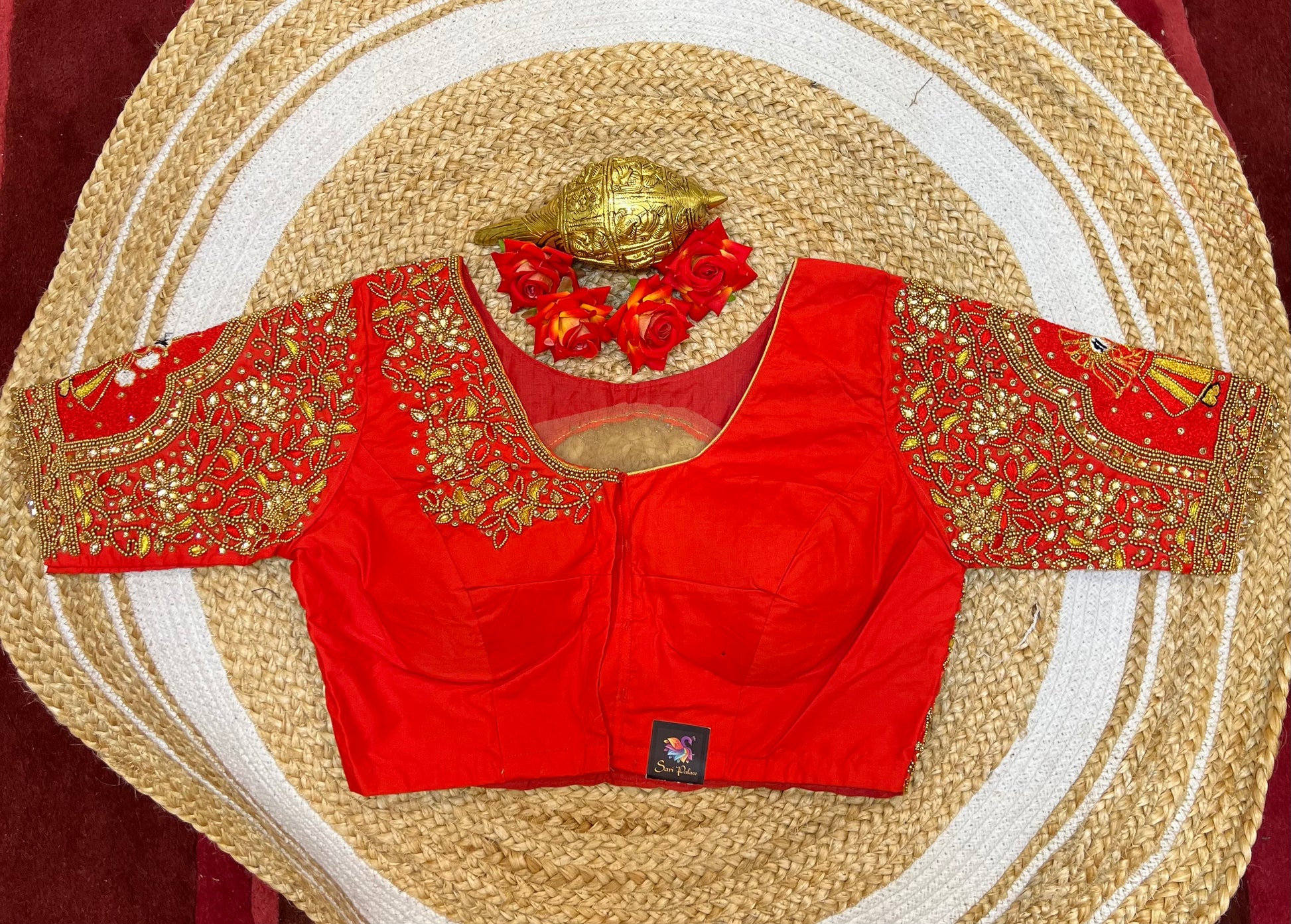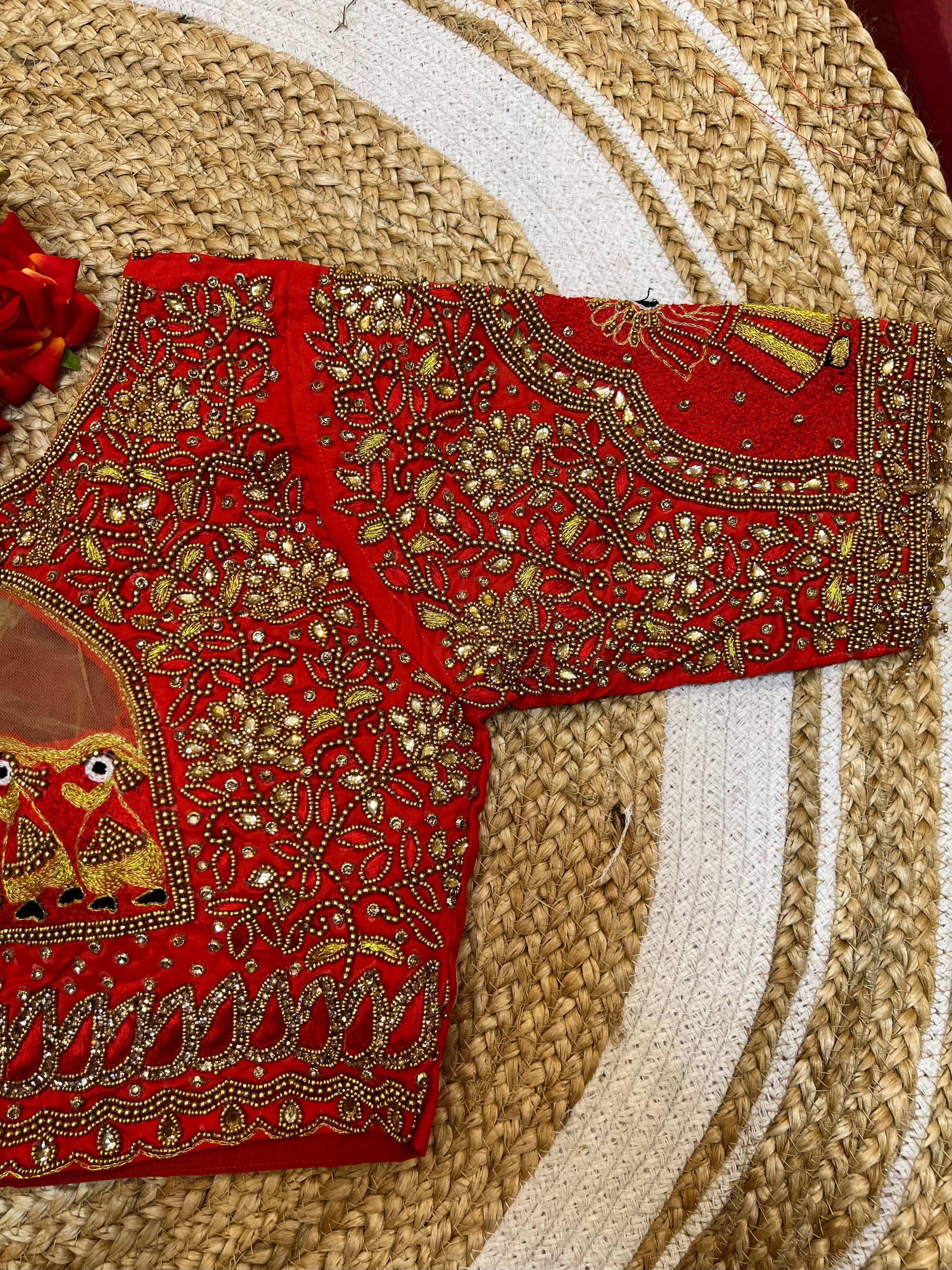 40” Bridal Aari hand Worked Sari Blouse Indian Top Choli Silk Red B35