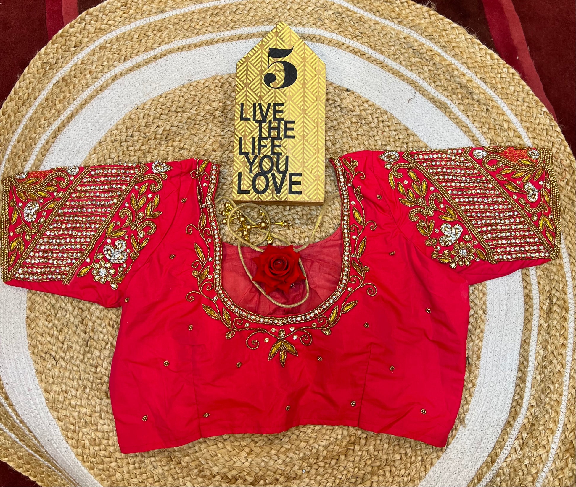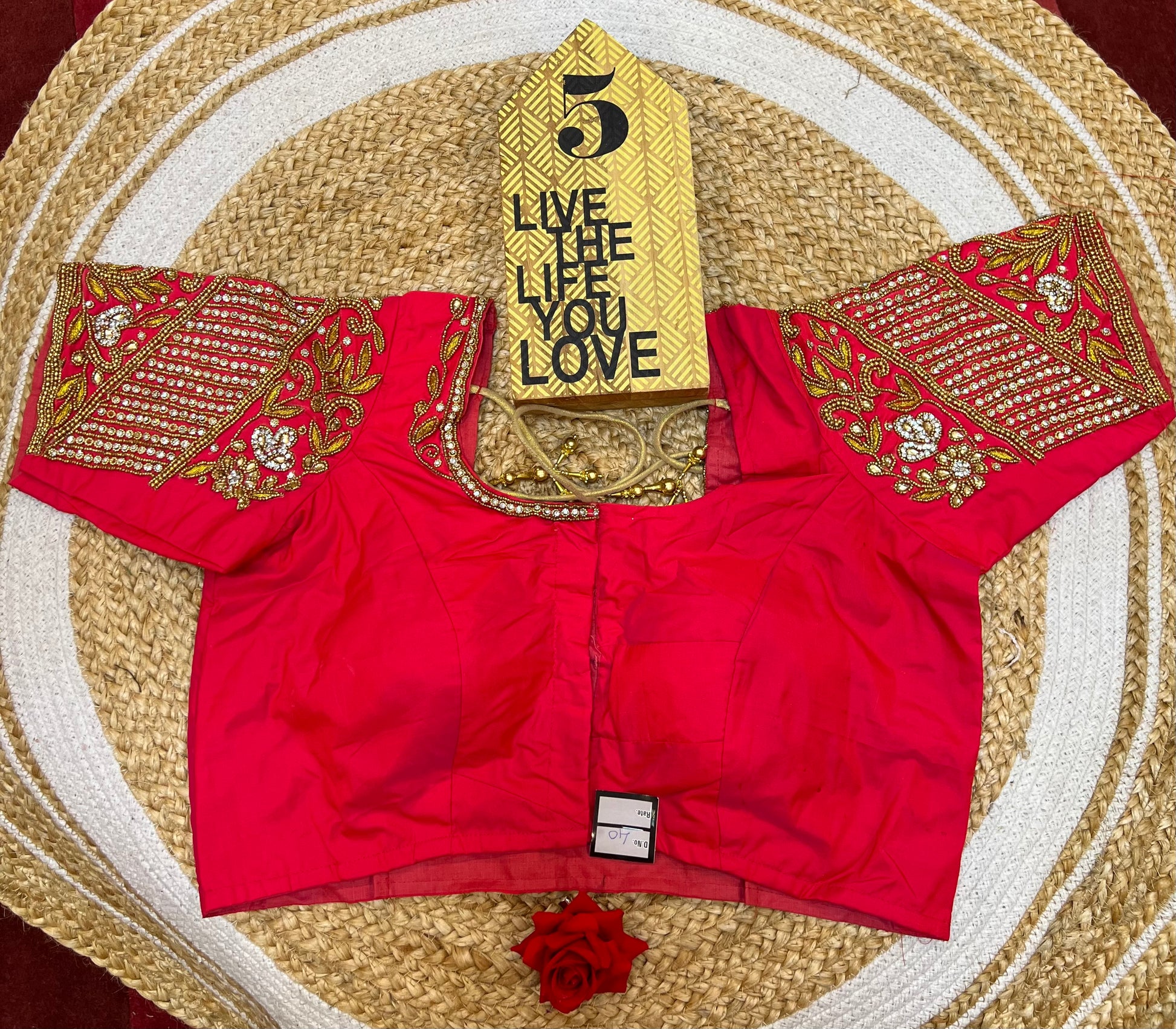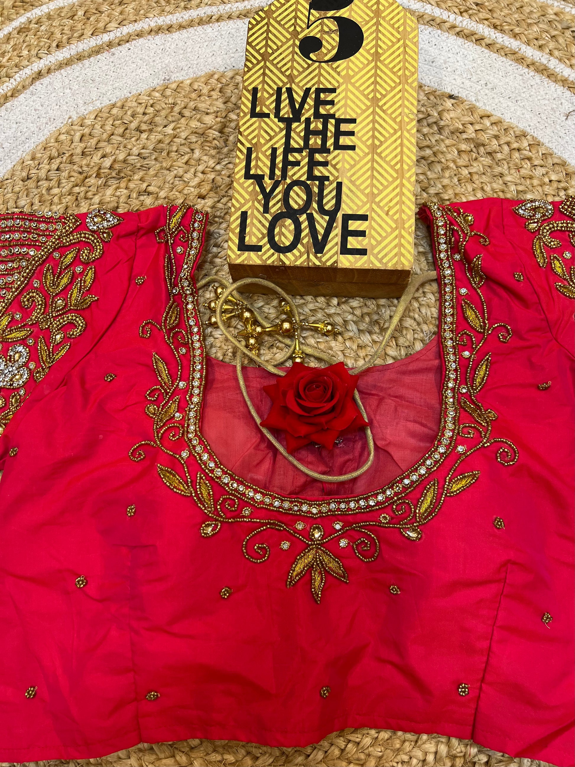 40” Bridal Aari hand Worked Sari Blouse Indian Top Choli Silk Red B37
