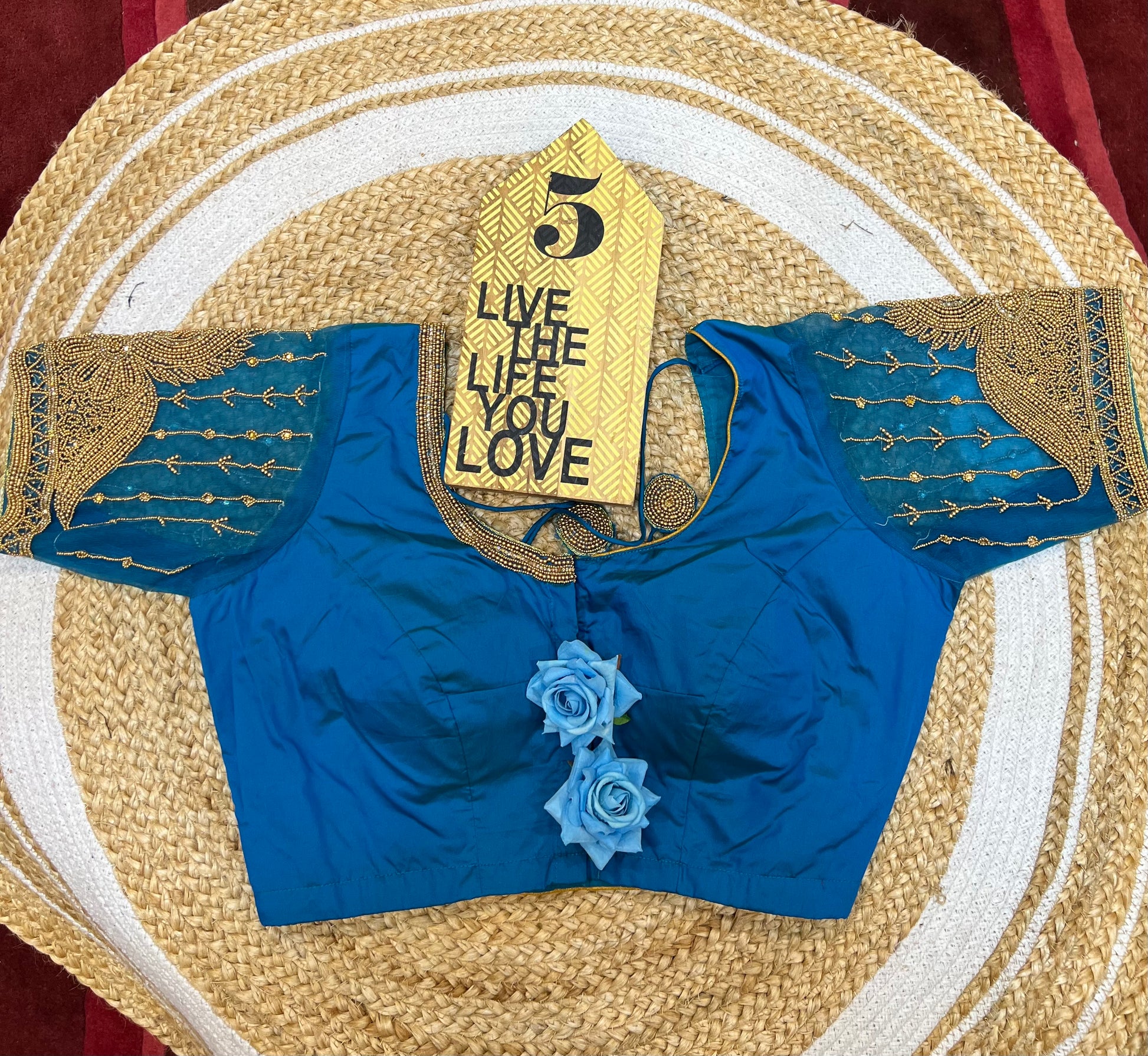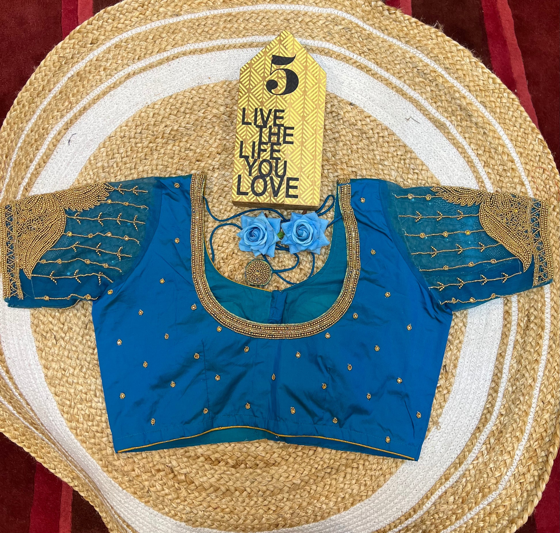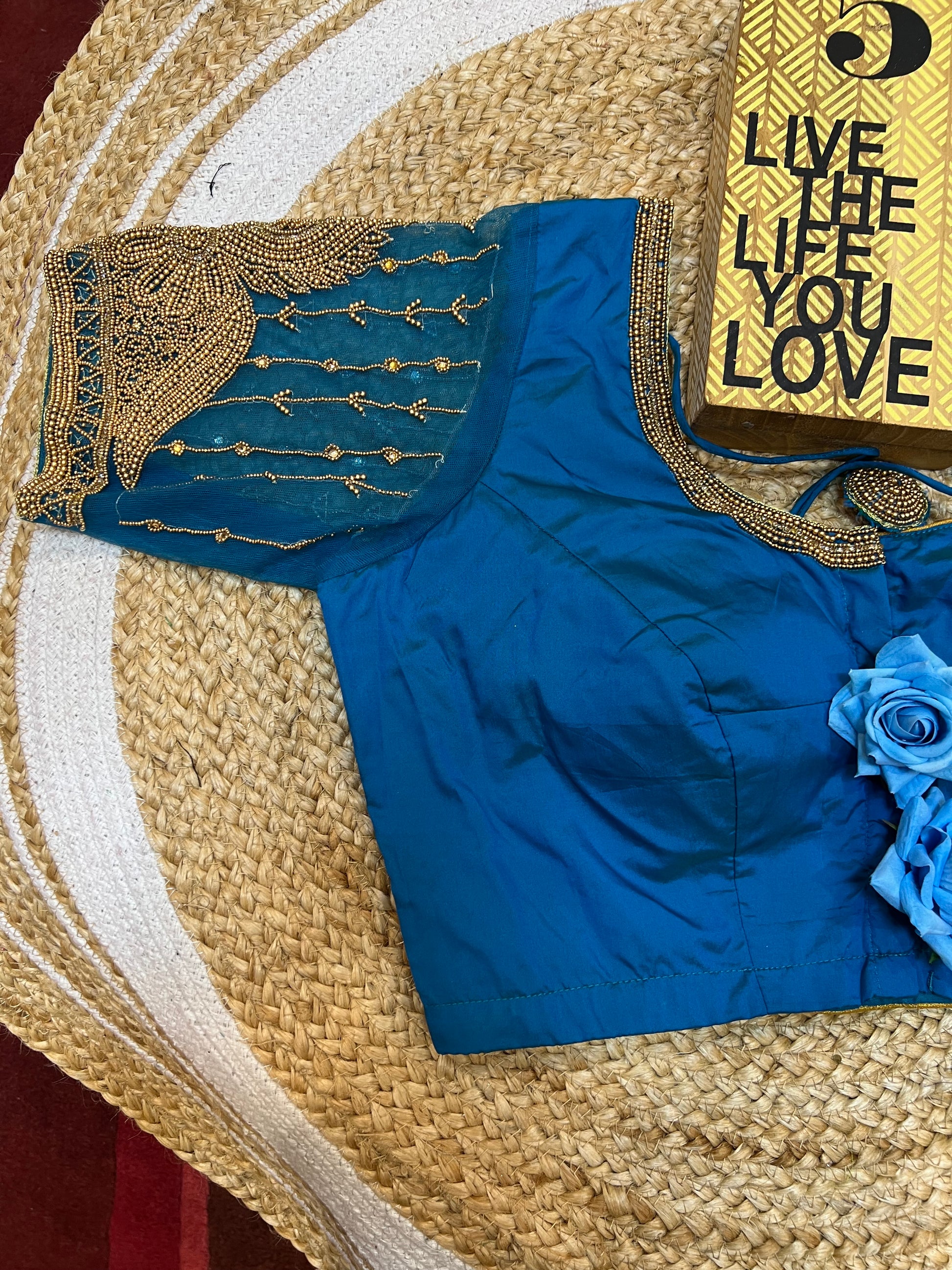 40” Bridal Aari hand Worked Sari Blouse Indian Top Choli Silk Blue B41