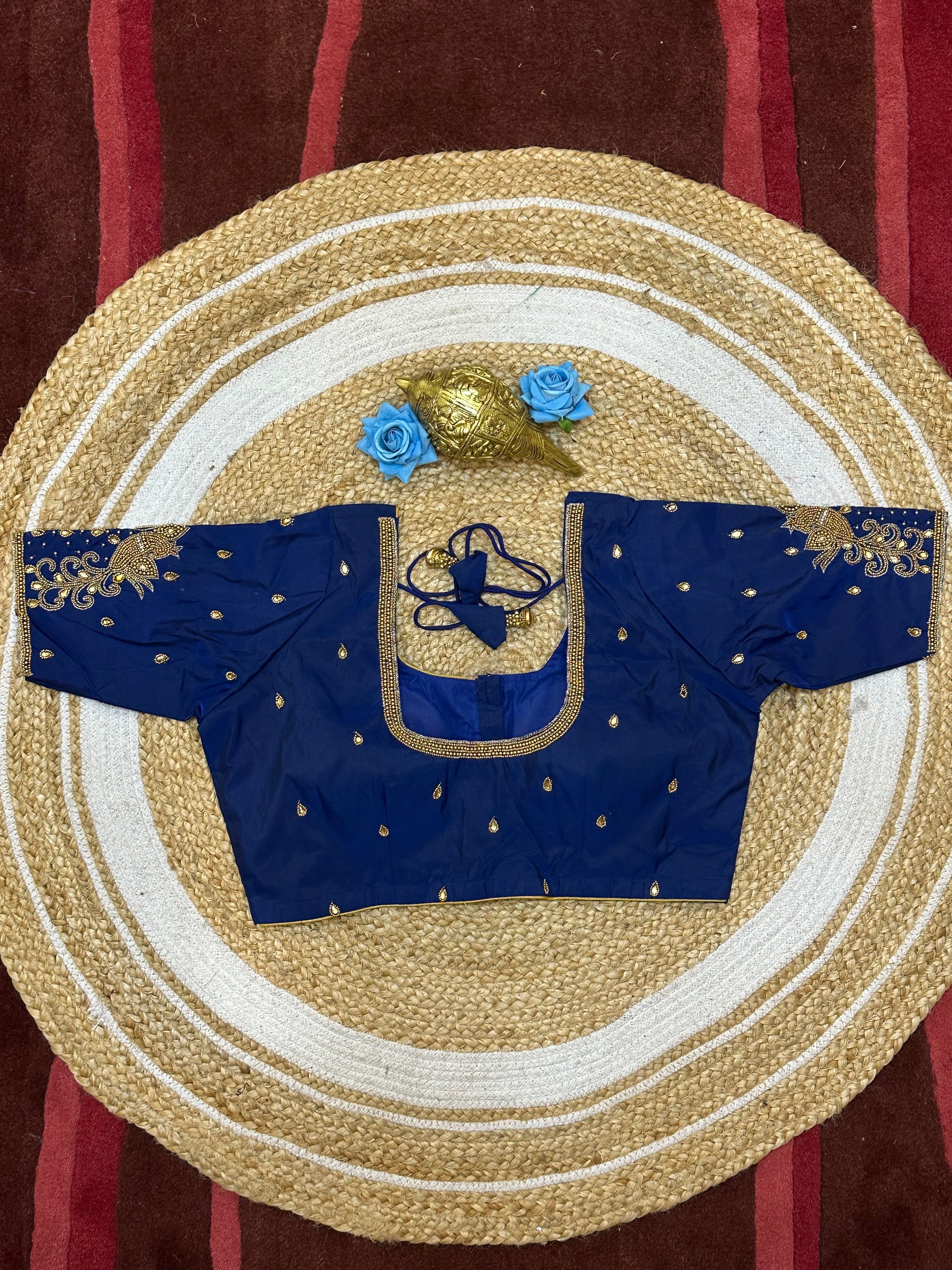 40” Size 10 Aari Worked Sari Blouse Indian Saree Top Silk Blue B182