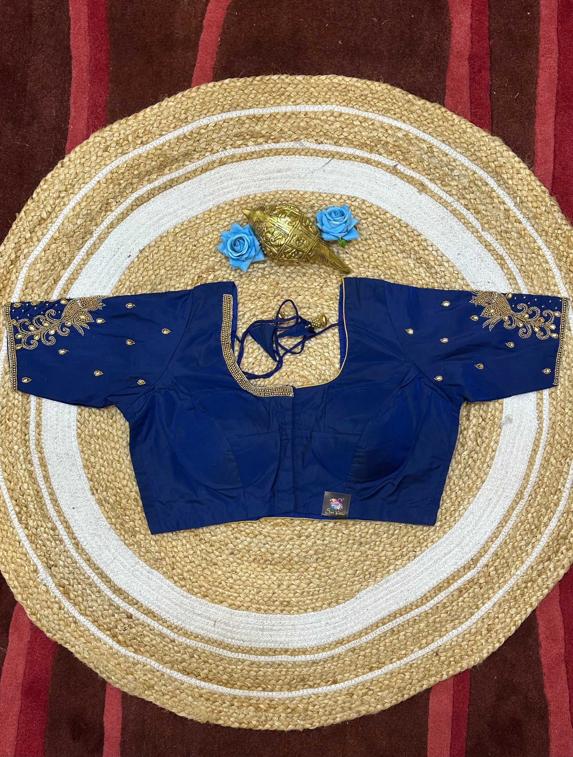 Step into the spotlight with our stunning silk ready-to-wear blouse, a true masterpiece adorned with exquisite hand embroidery featuring Aari/Maggam work on the sleeves and neckline! 💖✨
