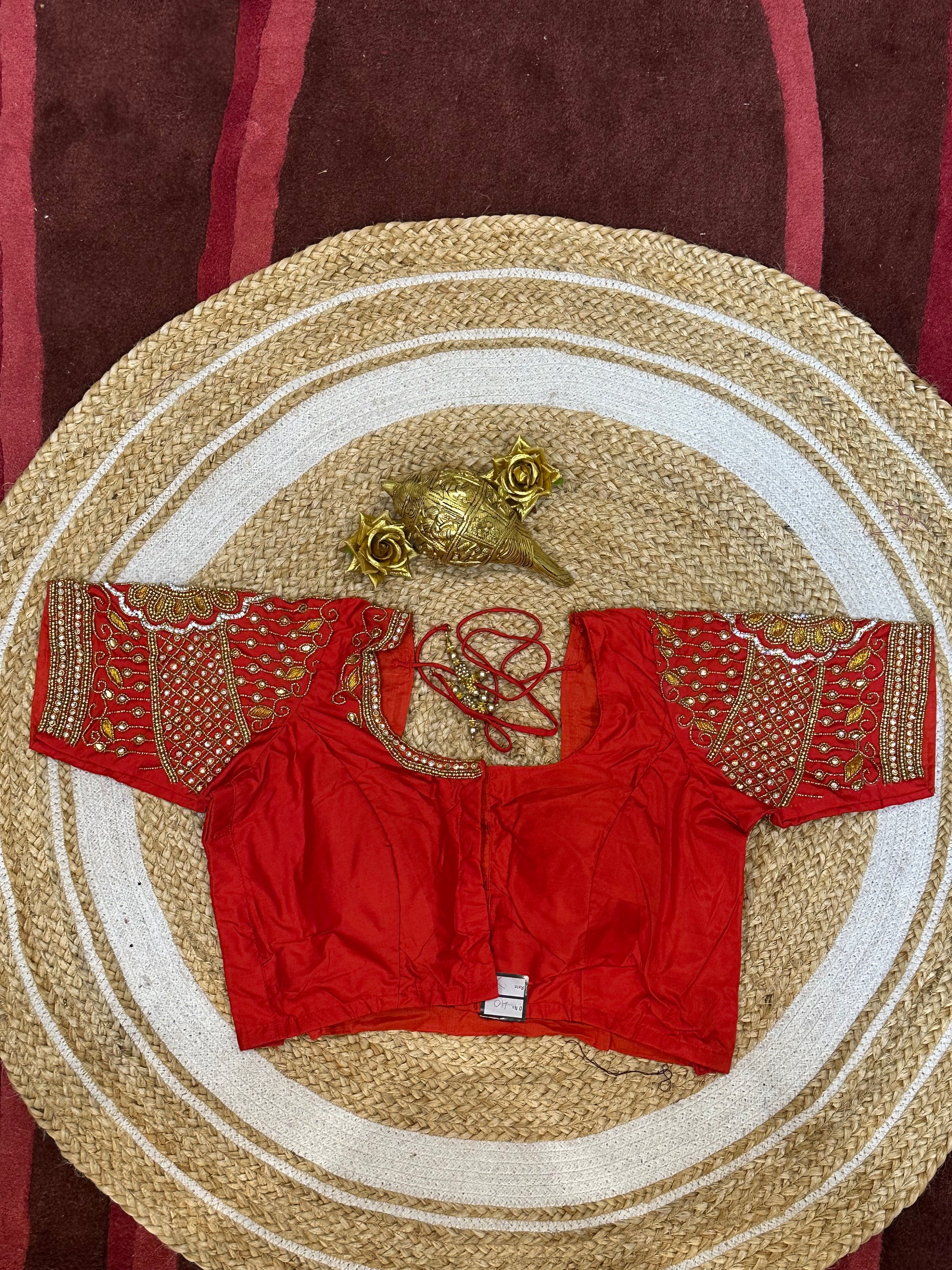 40” Size 10 Aari Worked Sari Blouse Indian Saree Top Silk Red B81