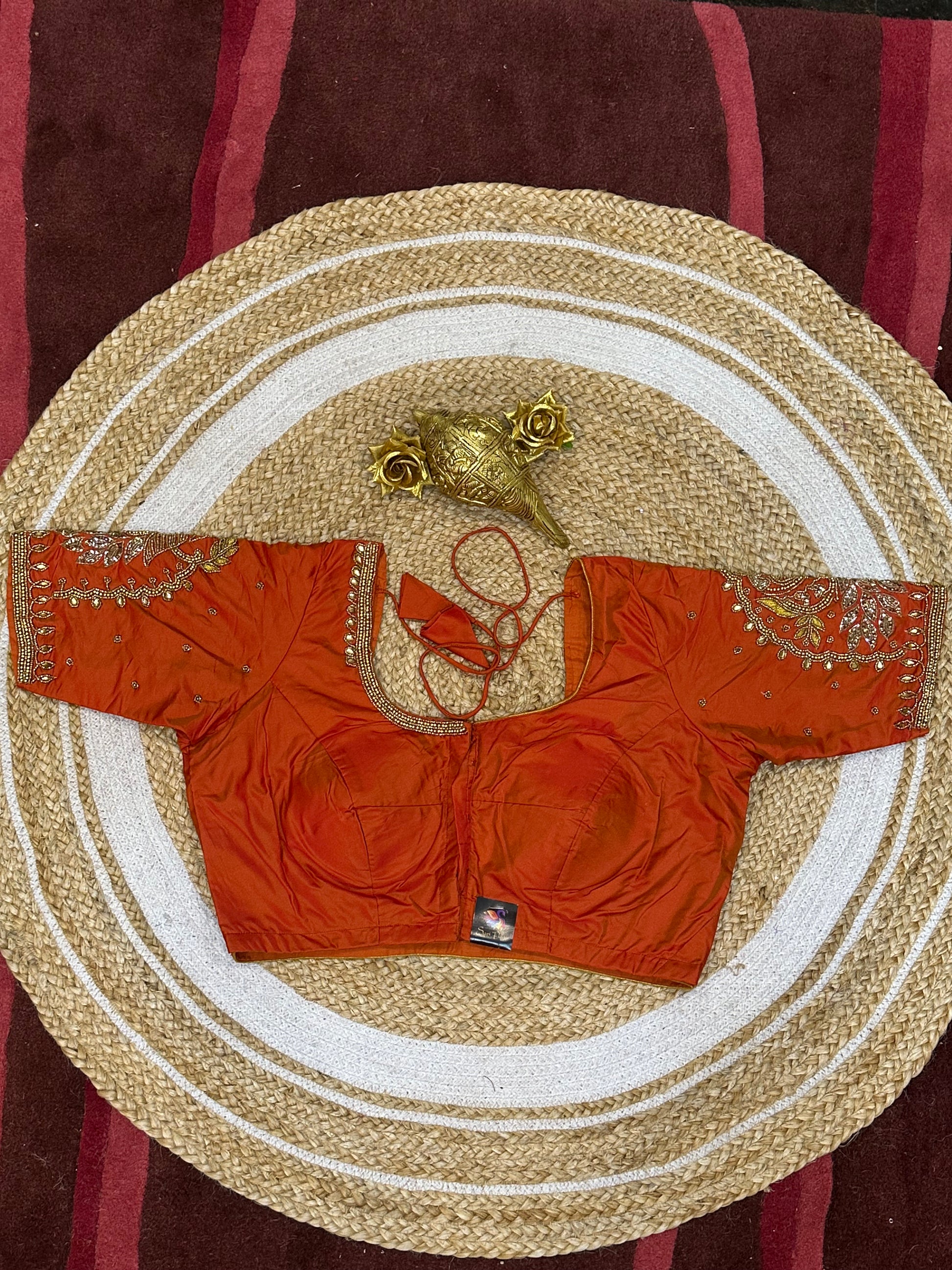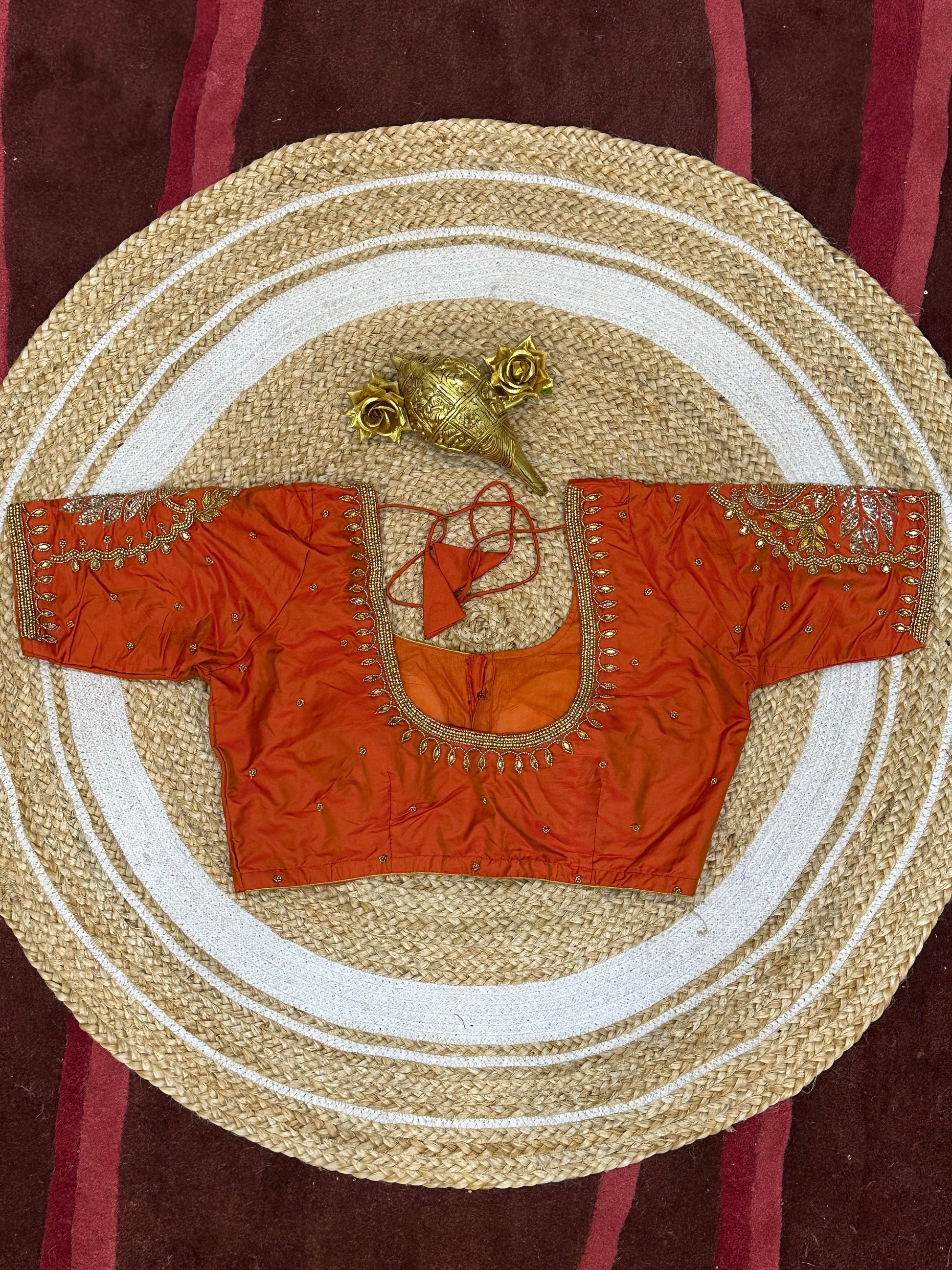 40” Size 10 Aari Worked Sari Blouse Indian Saree Top Silk Orange B74