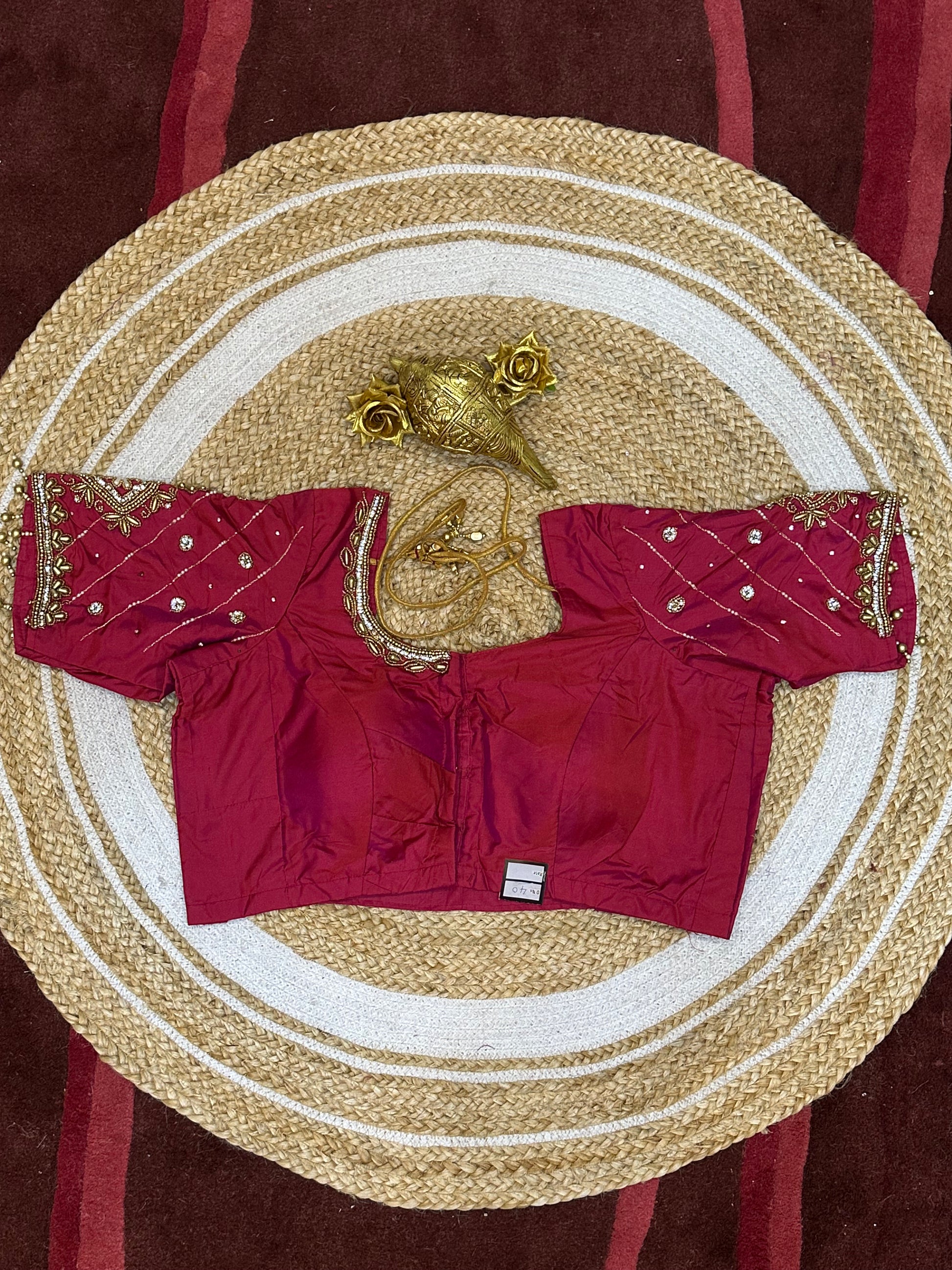Step into the spotlight with our stunning silk ready-to-wear blouse, a true masterpiece adorned with exquisite hand embroidery featuring Aari/Maggam work on the sleeves and neckline! 💖✨