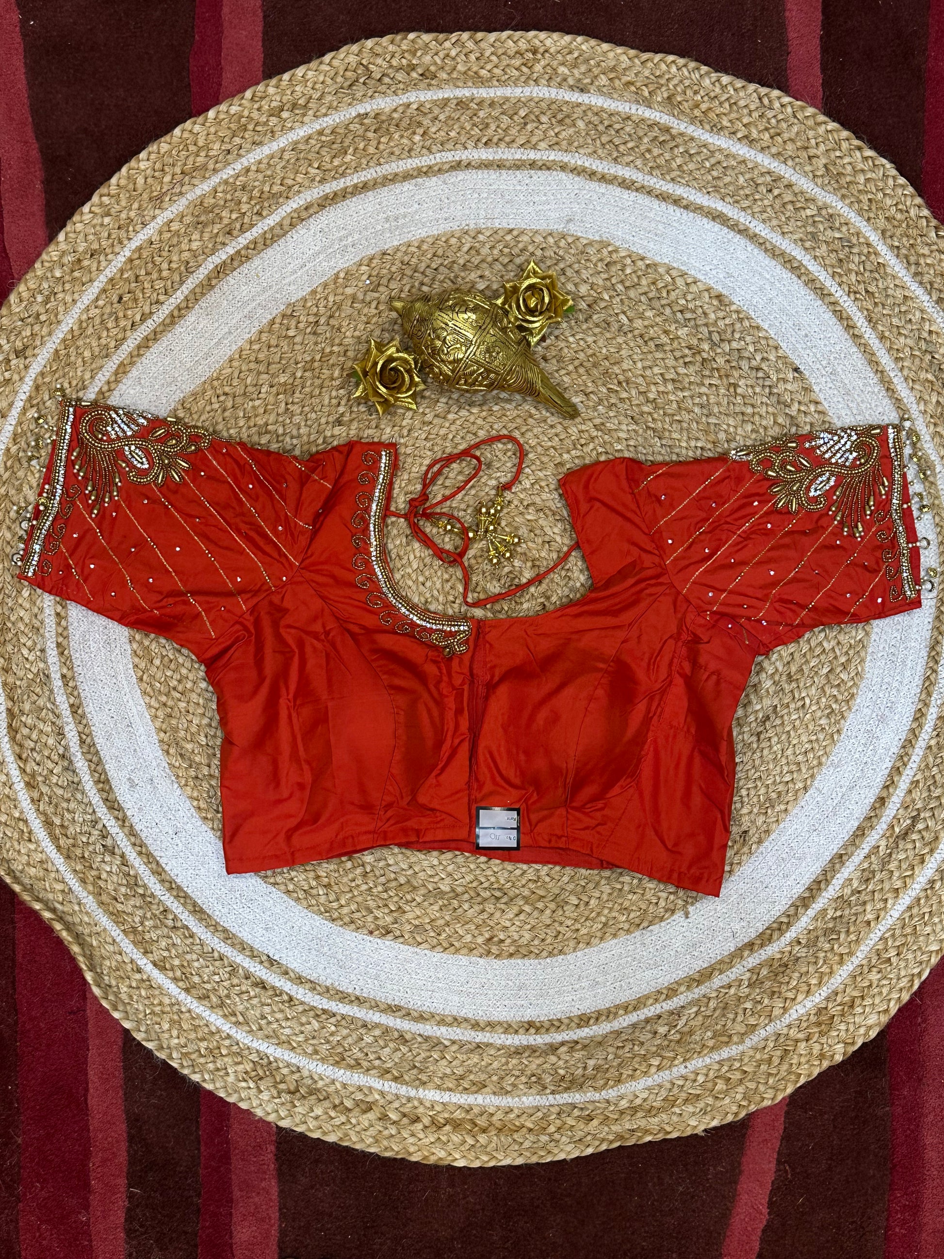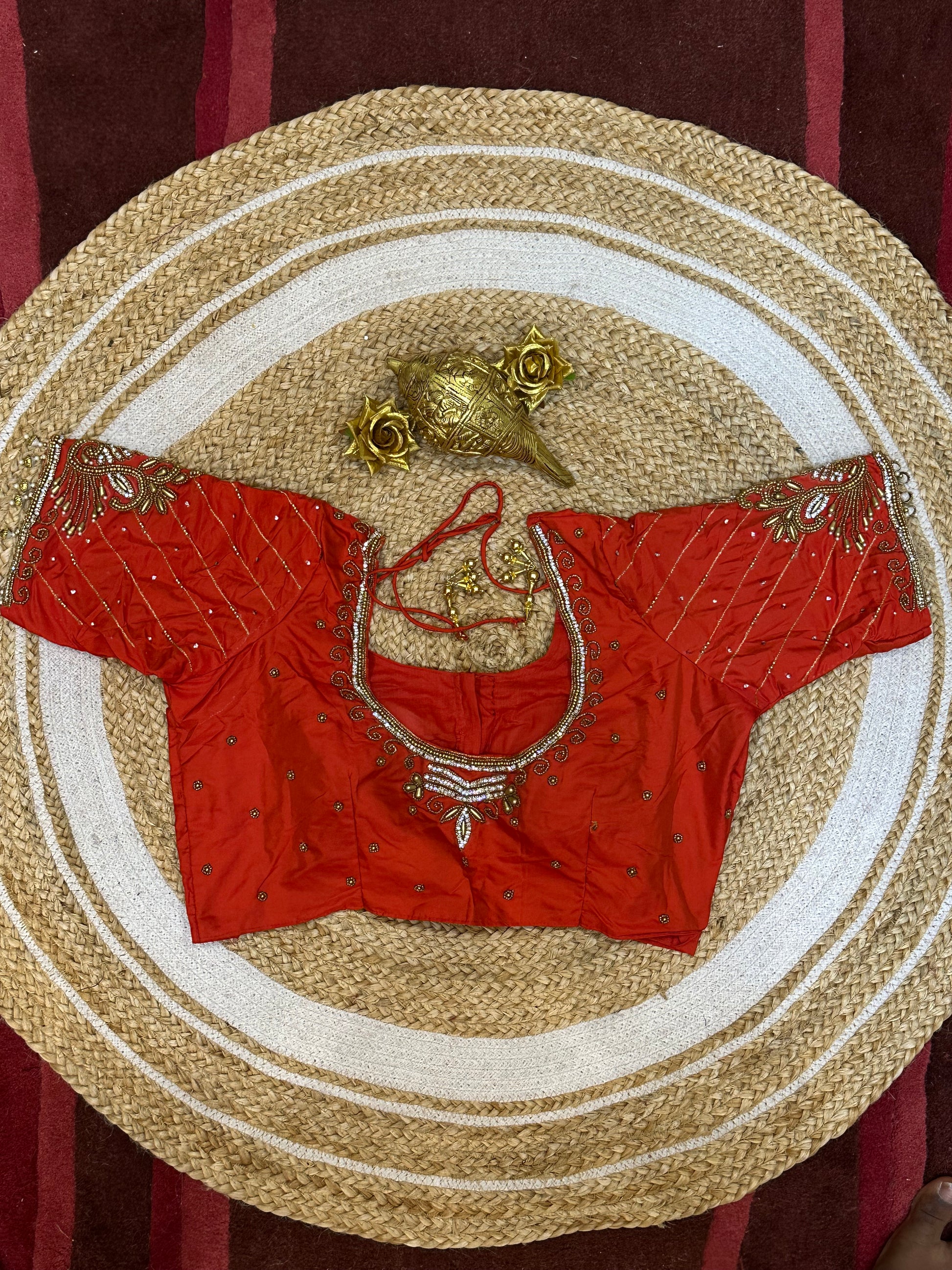 40โ Size 10 Aari Worked Sari Blouse Indian Saree Top Silk Orangey Red B87