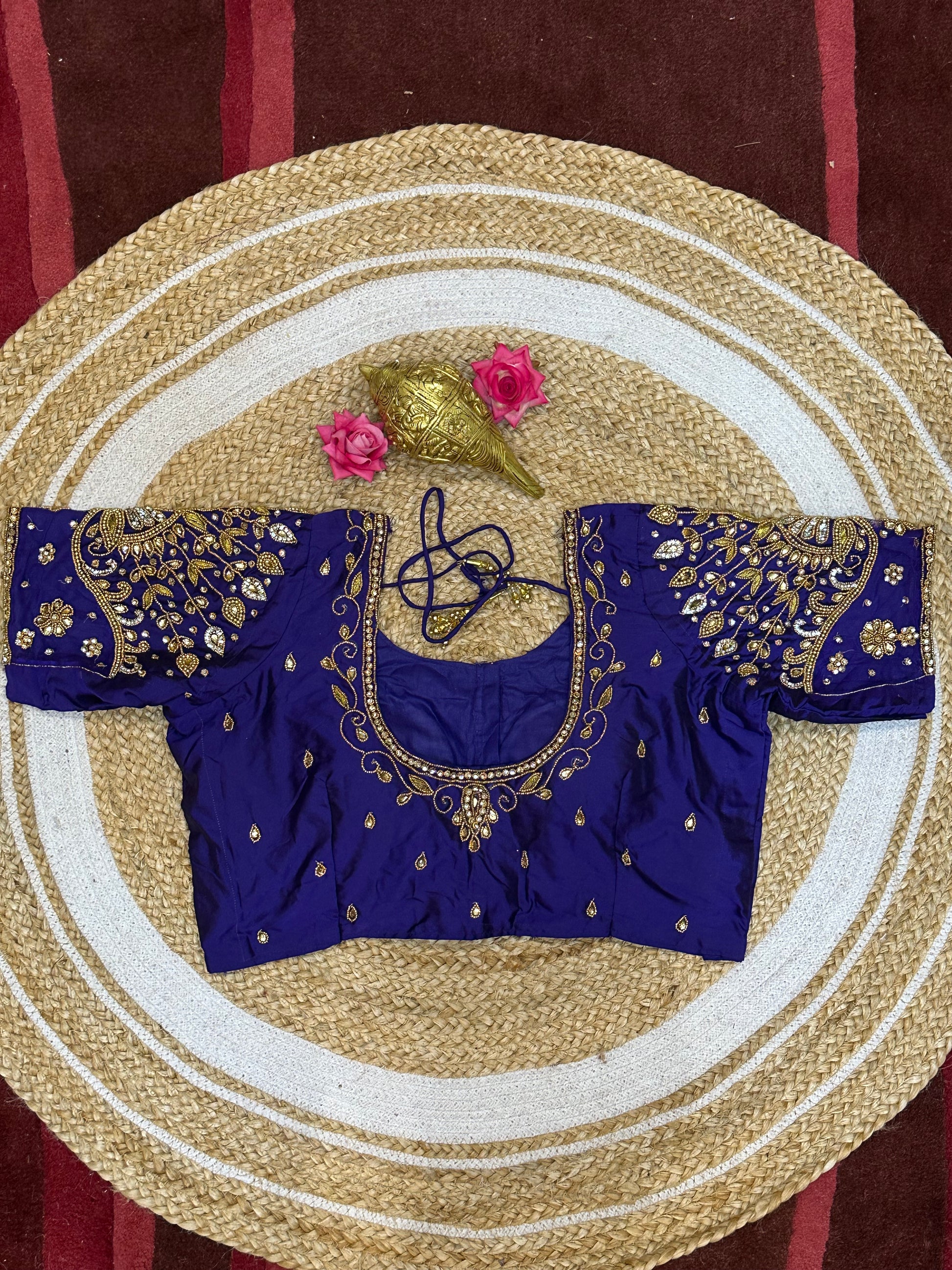 40” Size 10 Aari Worked Sari Blouse Indian Saree Top Silk Blue B96