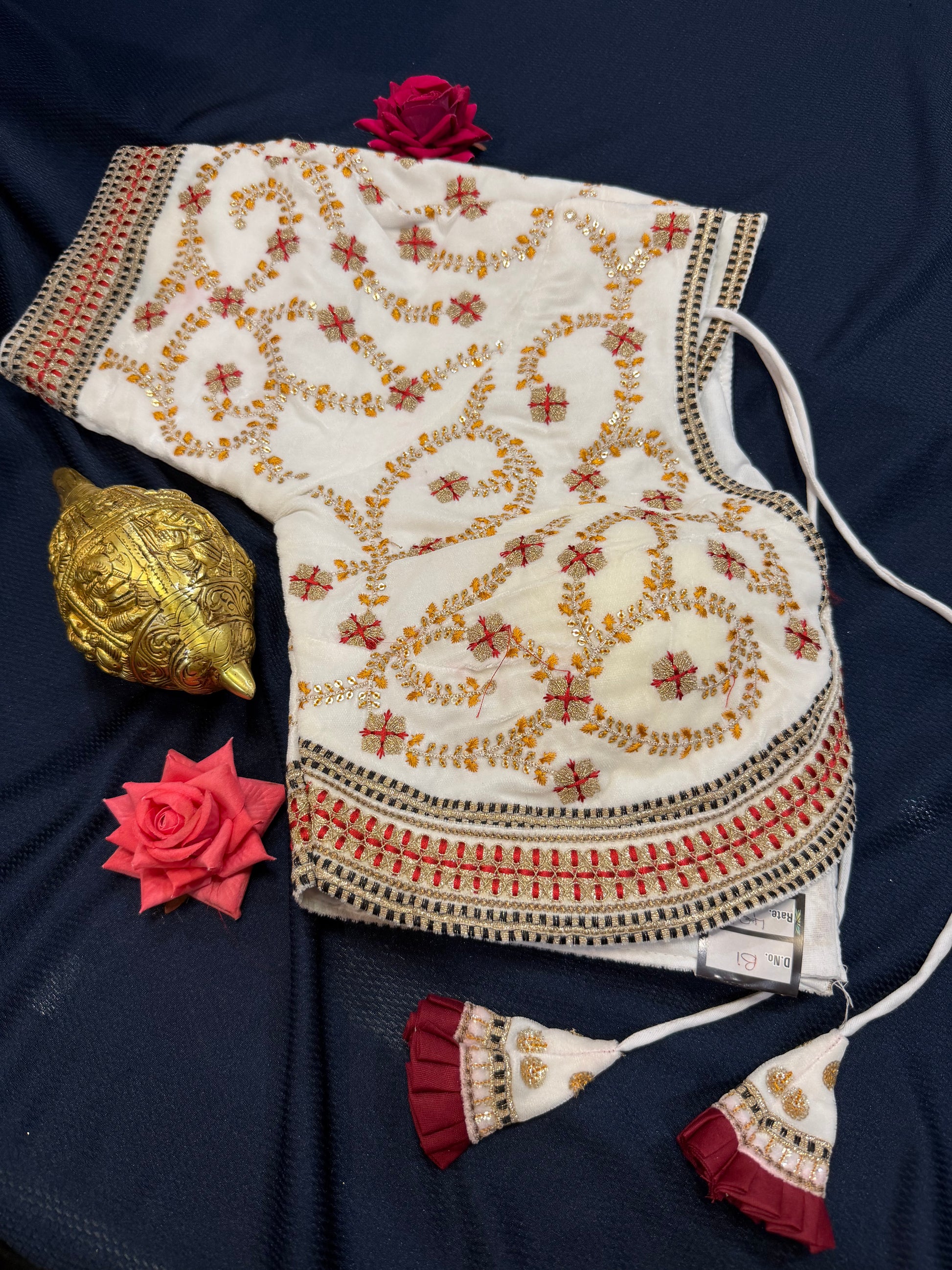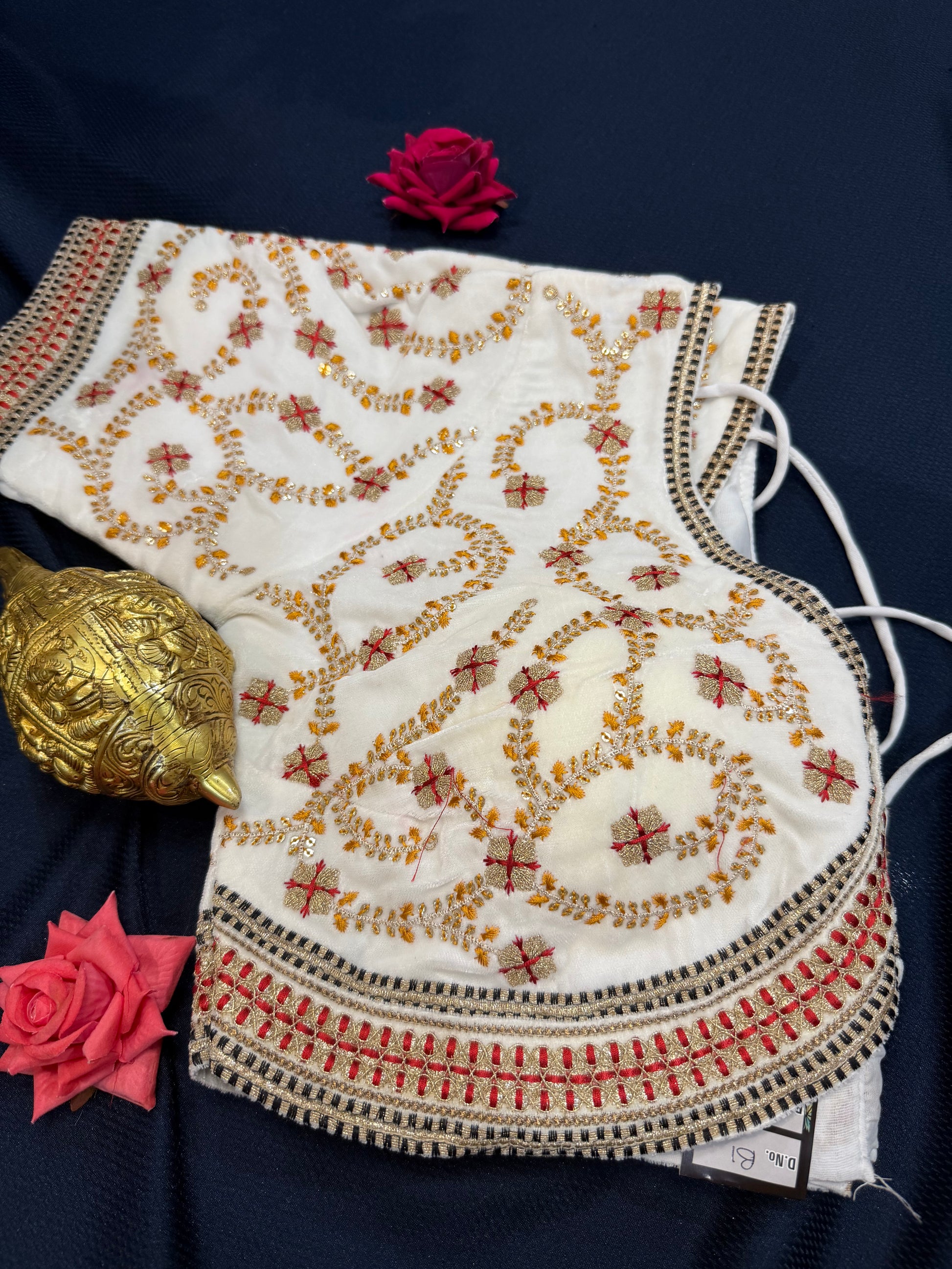 📸✨ Introducing our stunning 40” size Indian Sari Blouse! Crafted from luxurious white velvet, this beauty features a chic back opening and an adjustable margin, allowing you to customize the fit just for you. Perfectly designed to pair with your favorite lehenga or sari, it’s a must-have for your festive wardrobe! 💖