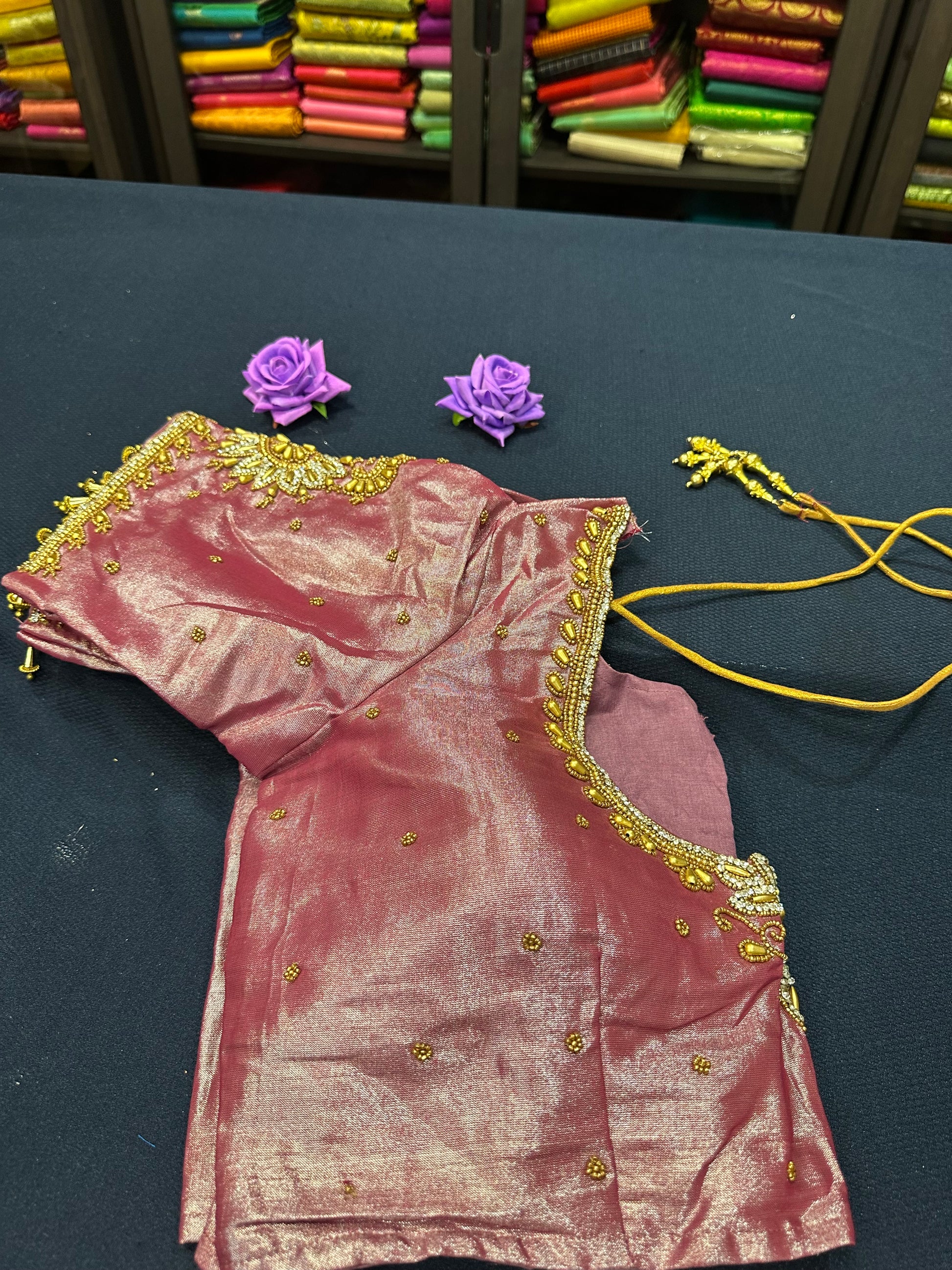 📸✨ Introducing our stunning 40” size Indian Sari Blouse! Crafted from luxurious Onion Pink Silk material and with hand Aari worked with beads and stones, this beauty features a chic front opening and an adjustable margin, allowing you to customize the fit just for you. Perfectly designed to pair with your favorite lehenga or sari, it’s a must-have for your festive wardrobe! 💖