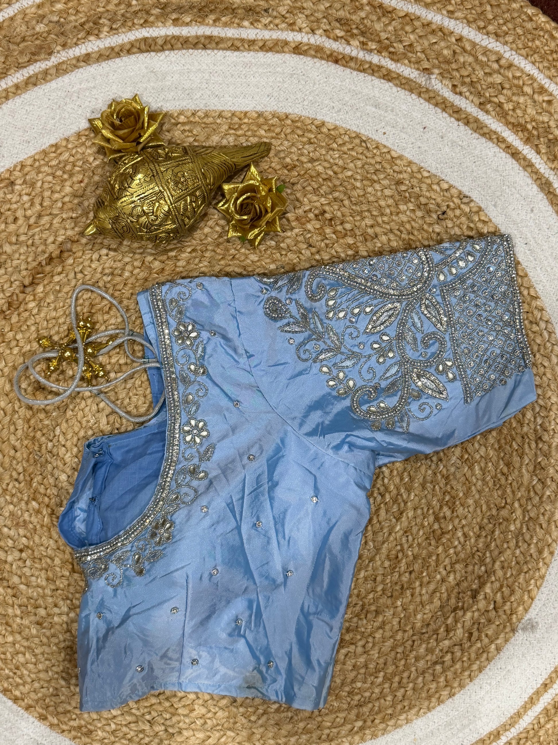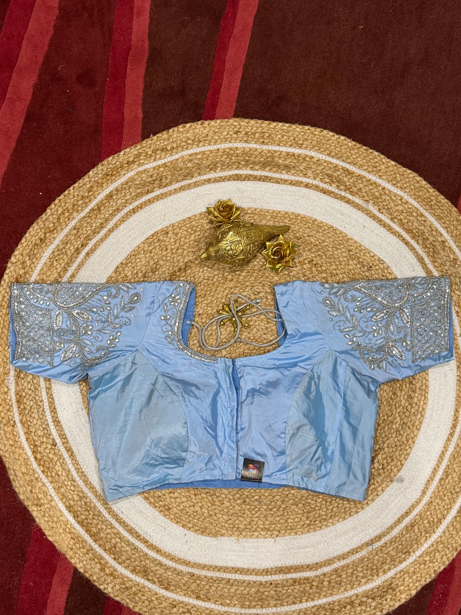 42” XL Size 12 size Aari Worked Sari Blouse Indian Saree Top Blue B164
