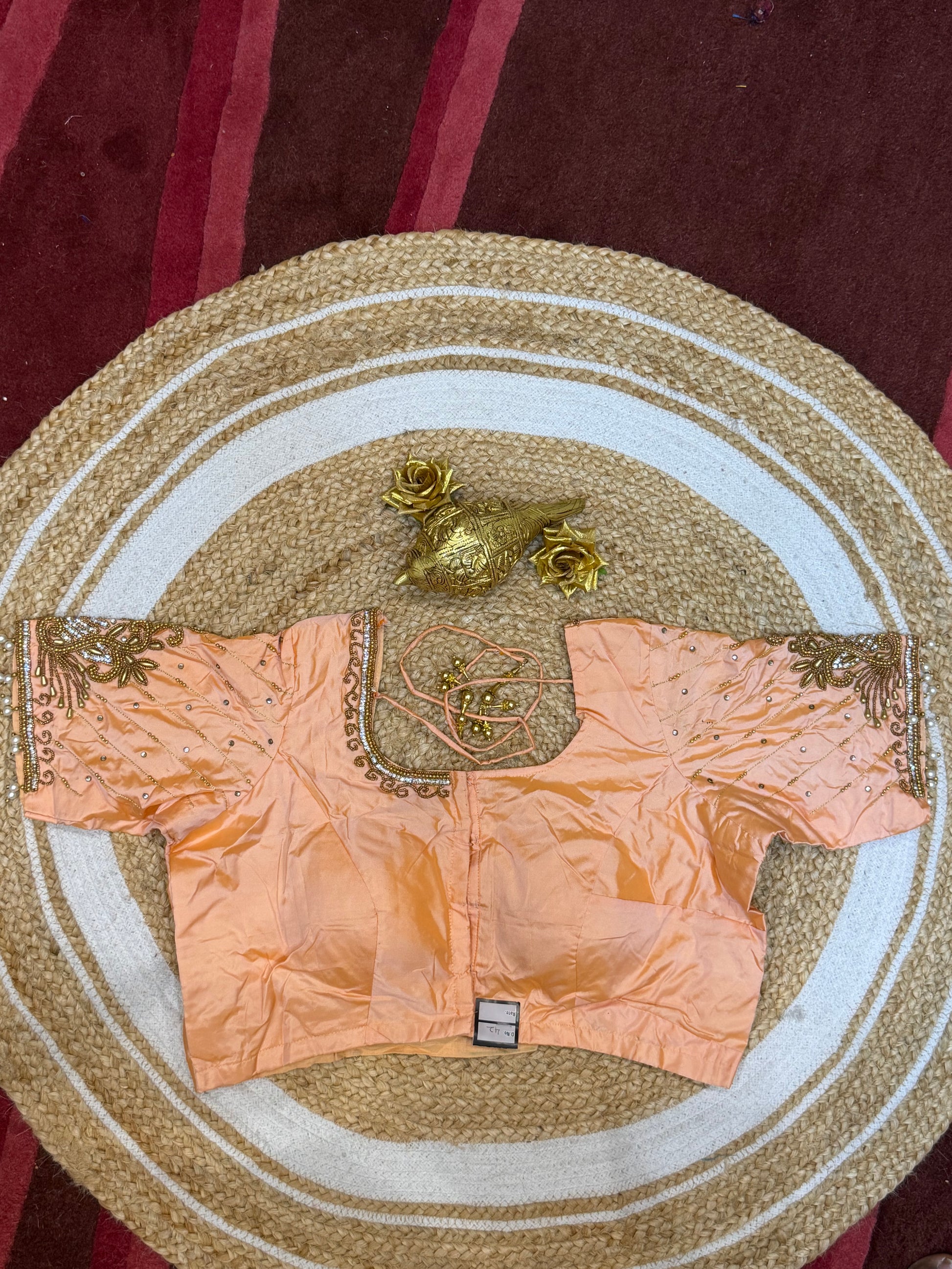 42” XL Size 12 size Aari Worked Sari Blouse Indian Saree Top Peach B155