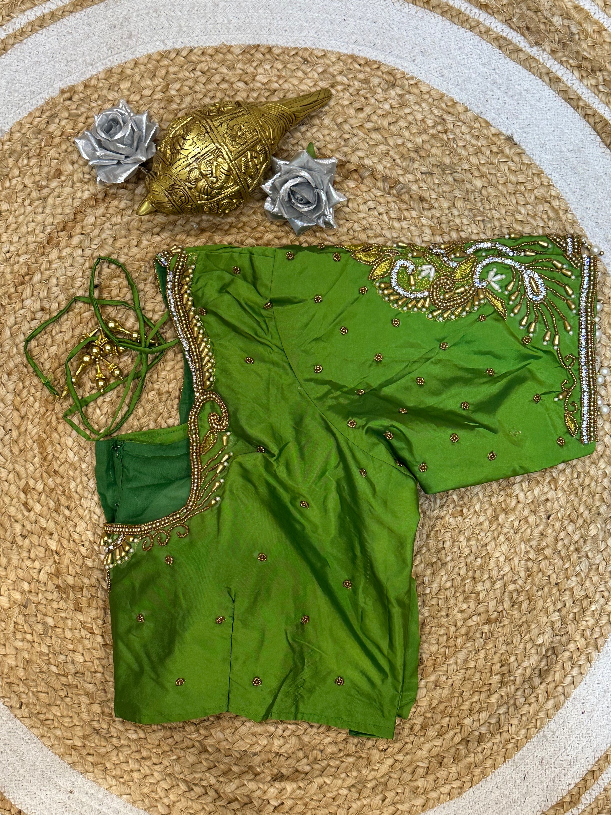 44” Size 14 Aari Worked Sari Blouse Indian Saree Top Silk Green B138