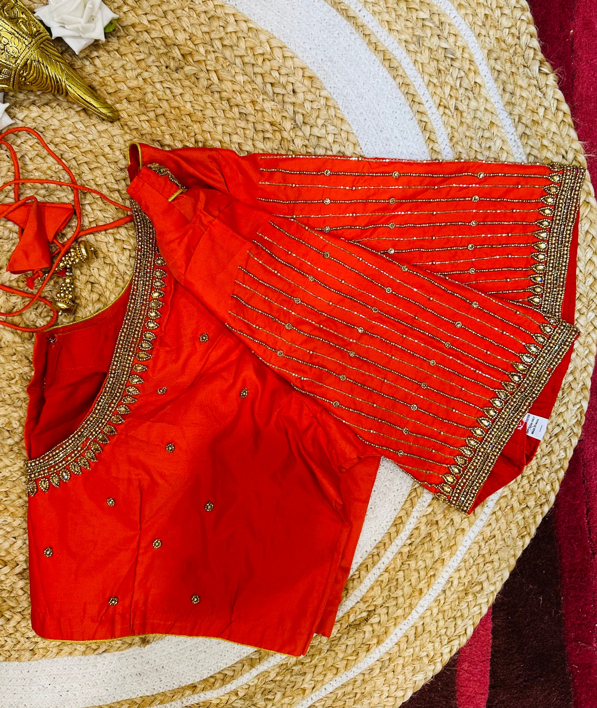 Designed to pair beautifully with your favorite lehenga or sari, this hand-worked delight boasts intricate detailing on one side of the front neck, elegantly draped by your sari on the other. The back neckline and sleeves are elegantly adorned, creating a harmonious look for any occasion! 🎉