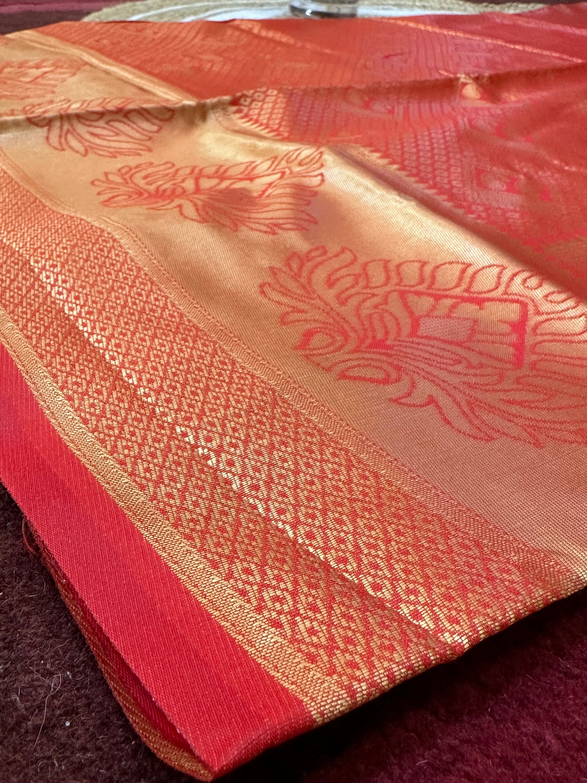 Art Silk Sari Indian Fancy Saree Red & Gold S72