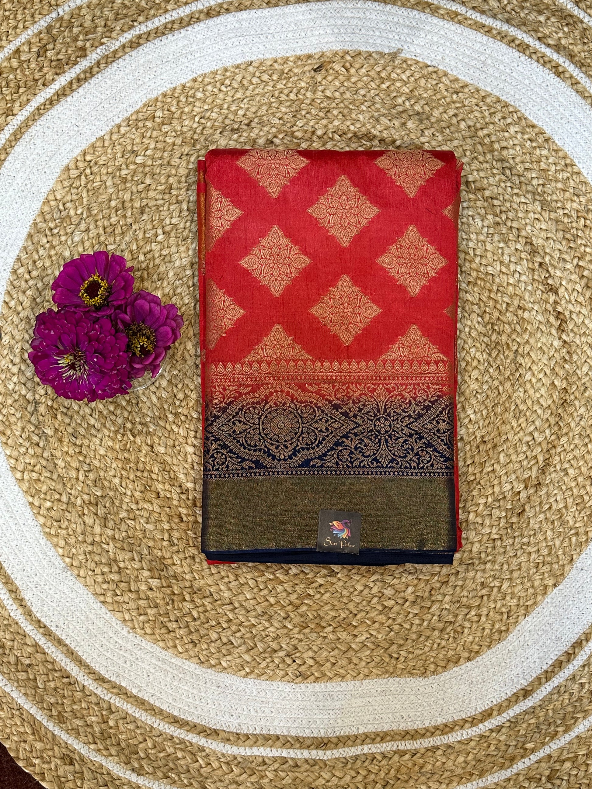 Bangalore Silk Sari Indian Fancy Saree Red & Blue S71