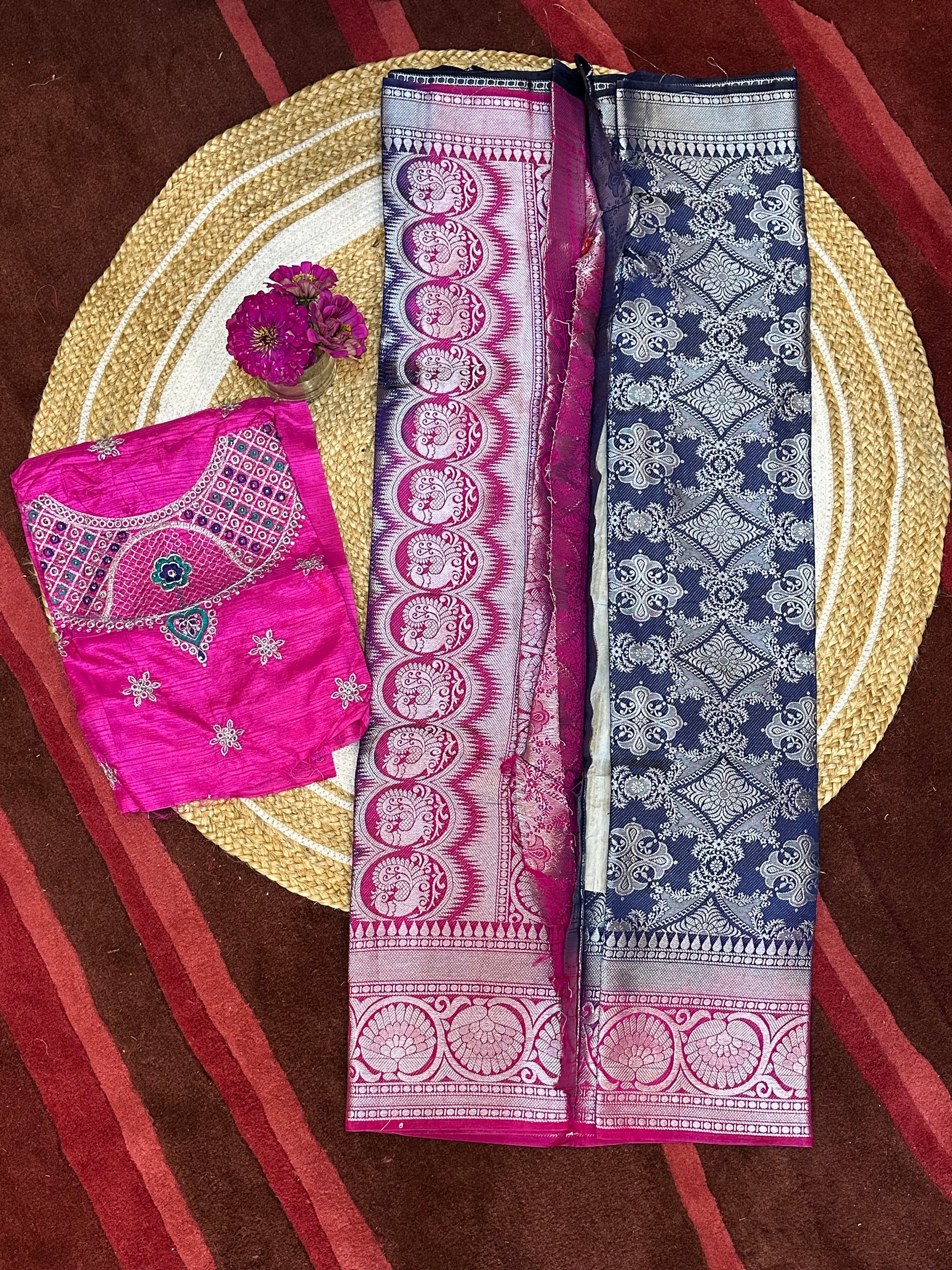 Bangalore Silk Sari Indian Fancy Saree Blue & Pink S68