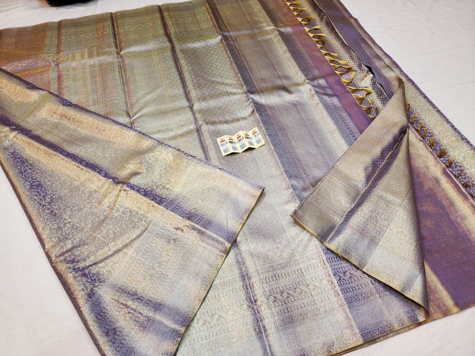 Bridal Tissue Kanchipuram Pure Silk Saree Gold Lavender Kanjivaram Sari| SPK152
