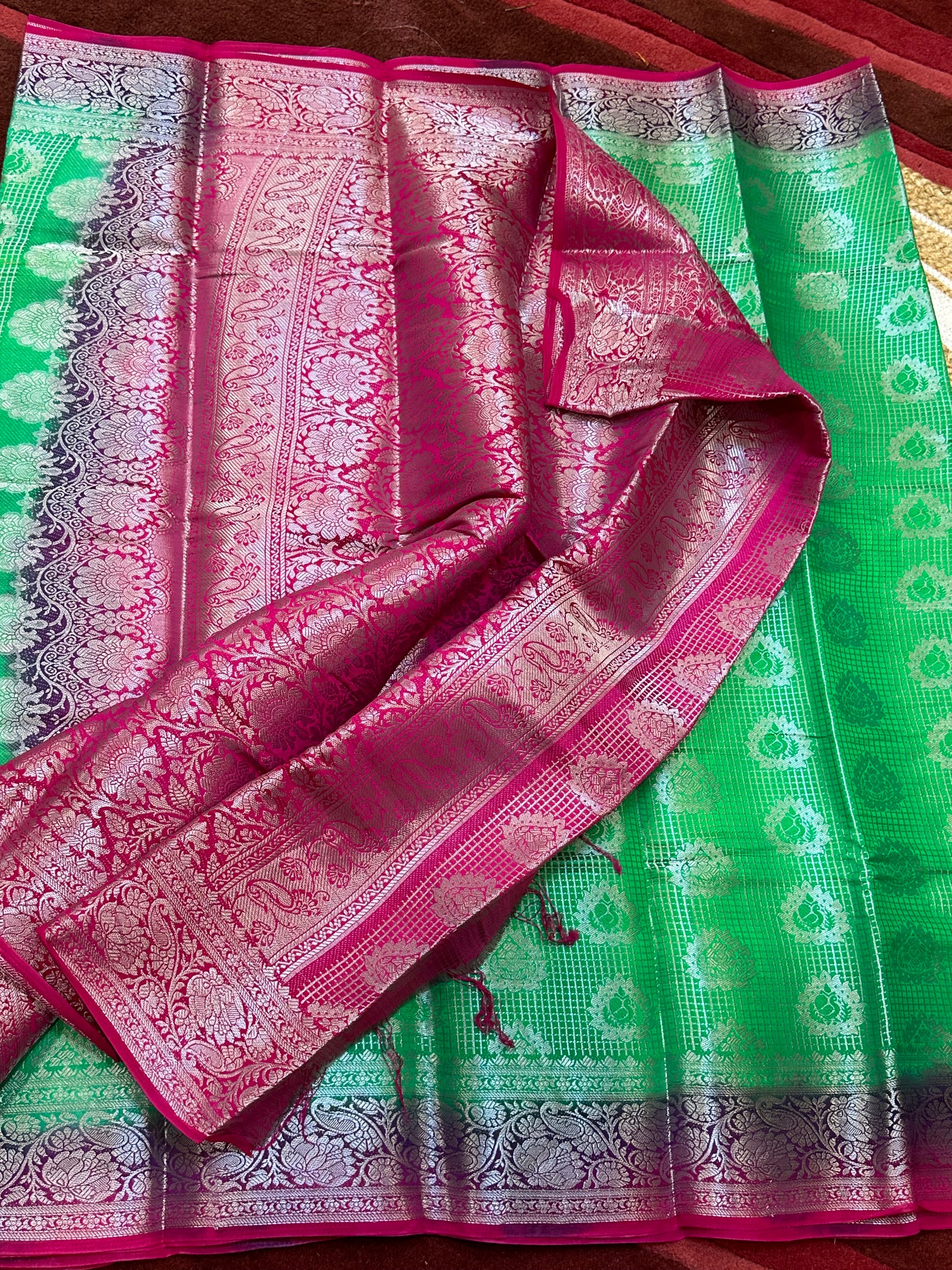 Bangalore Silk Sari Indian Fancy Saree Green & Pink S66