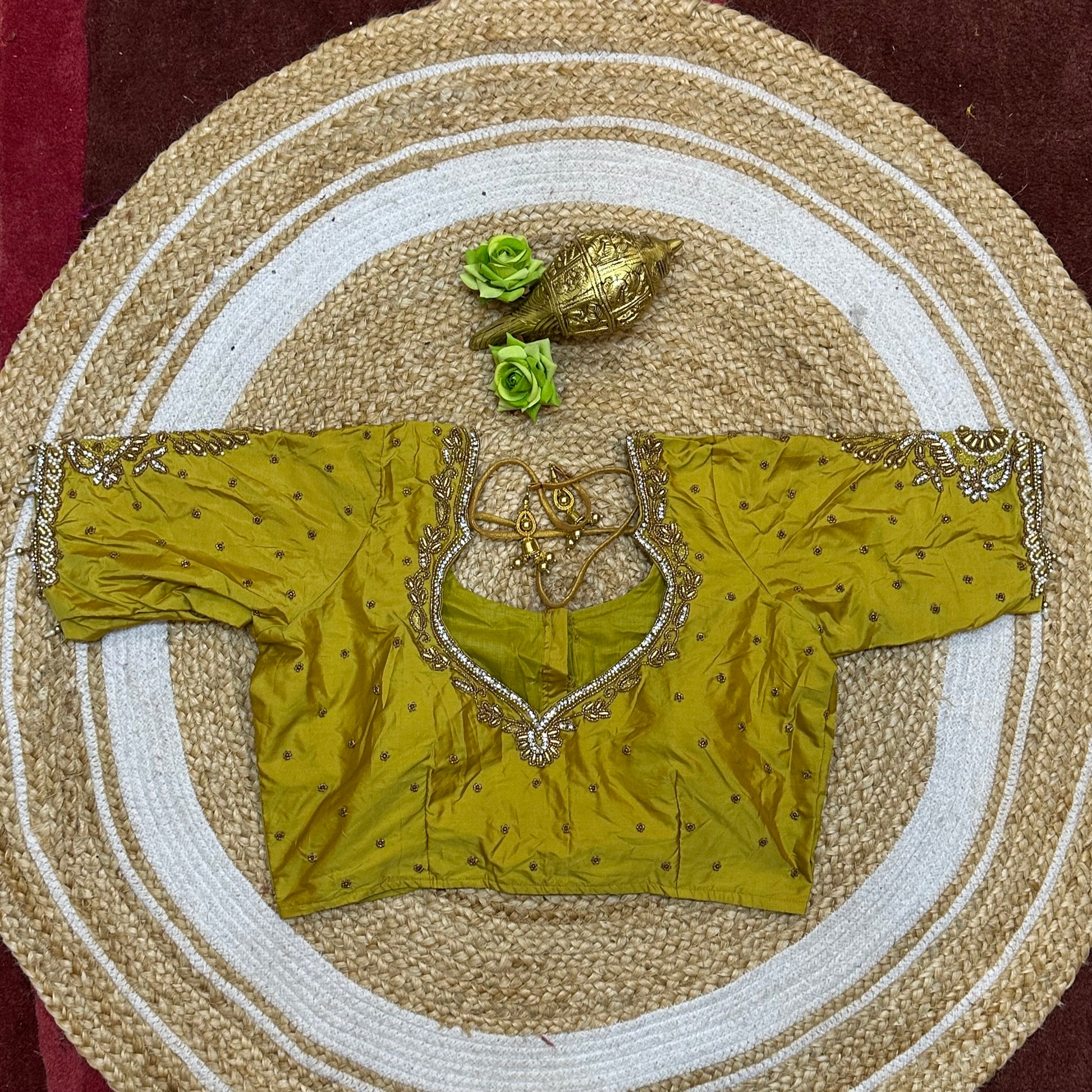 38” M Size 8 Aari Worked Sari Blouse Indian Saree Mehendi Green B310