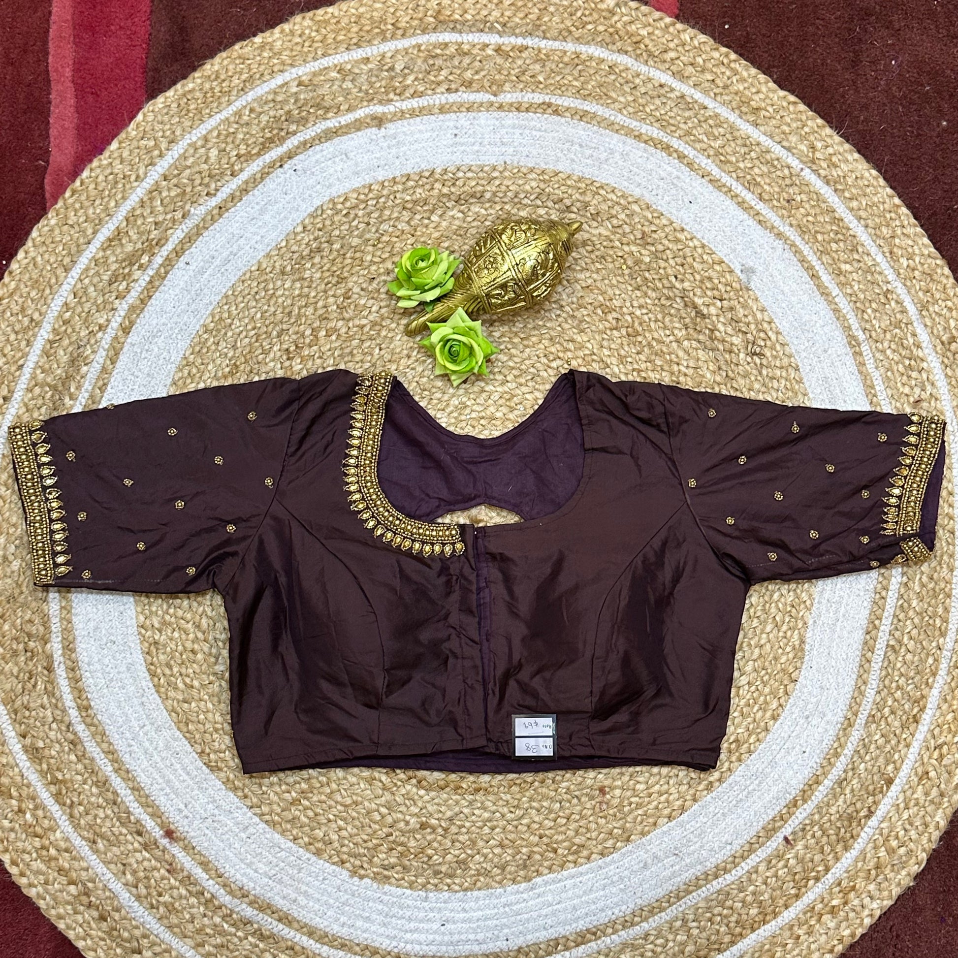 38” M Size 8 Aari Worked Sari Blouse Indian Saree Top Brown B277
