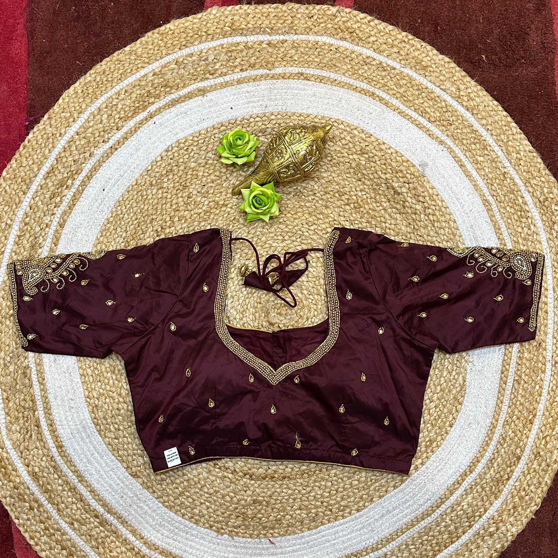 38” M Size 8 Aari Worked Sari Blouse Indian Saree Top Brown B272