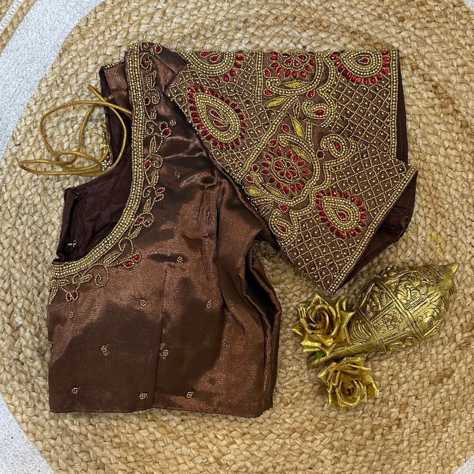 38” M Size 8 Aari Worked Sari Blouse Indian Saree Top Bronze B287