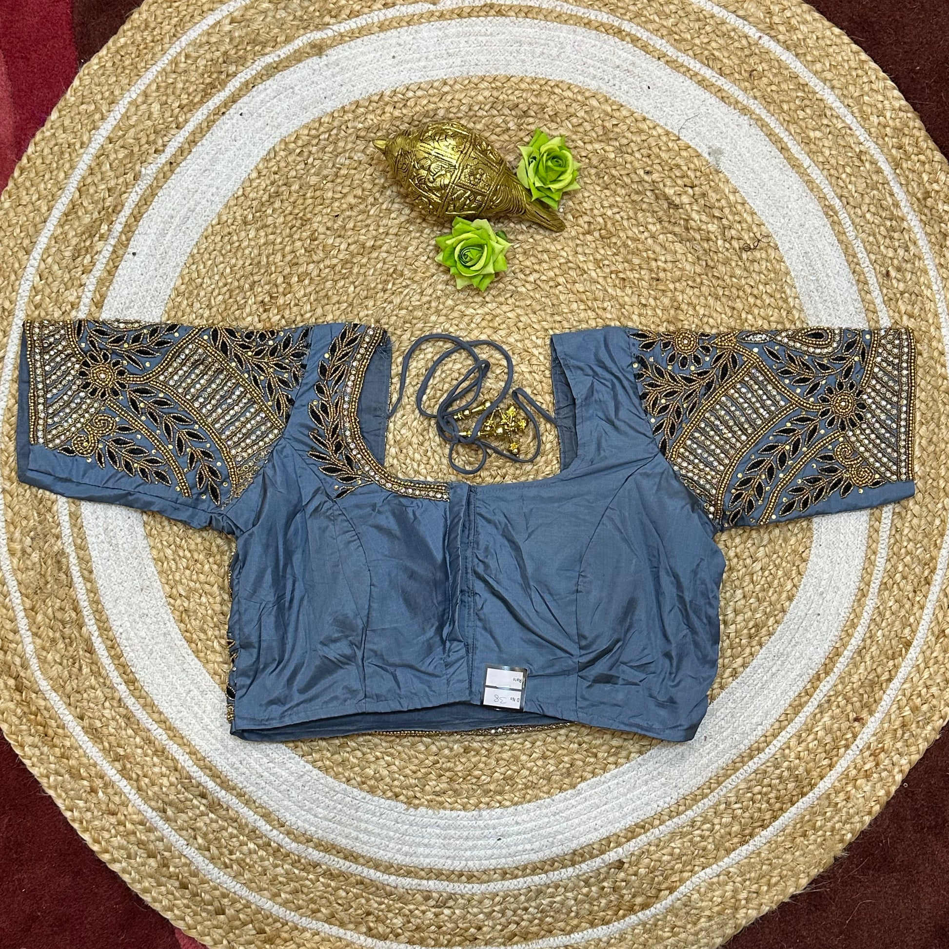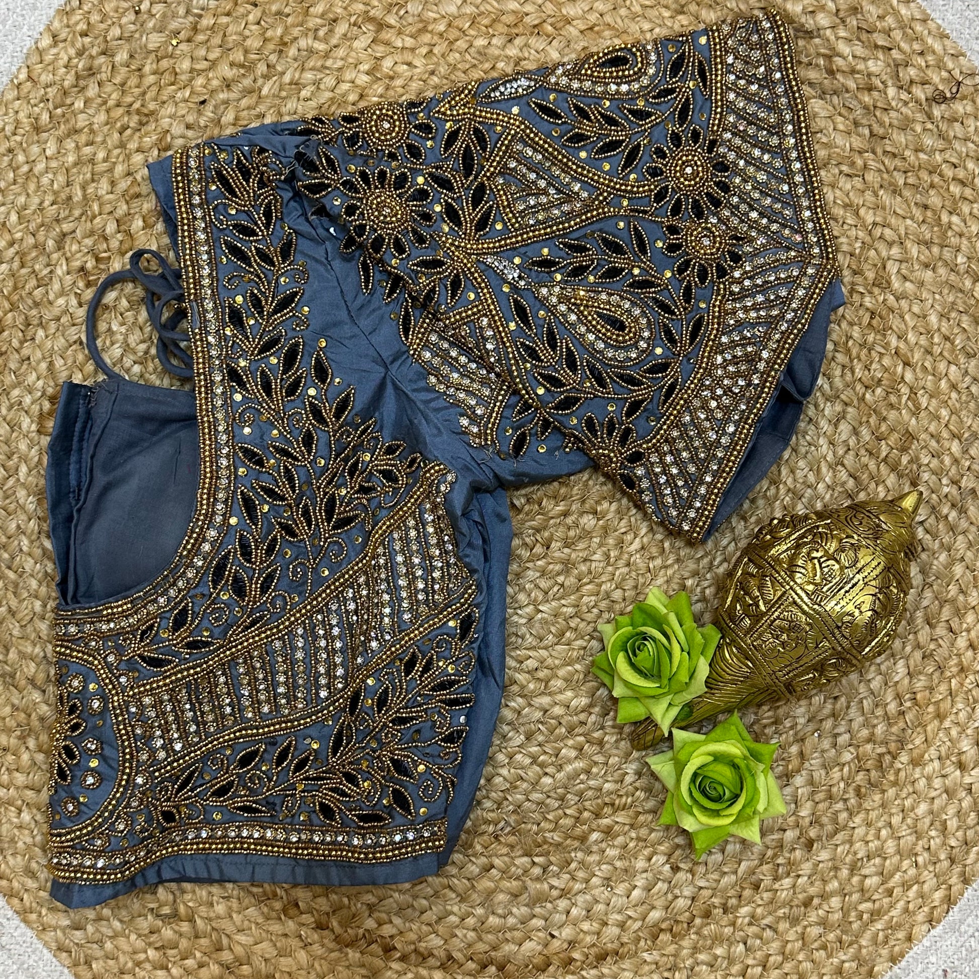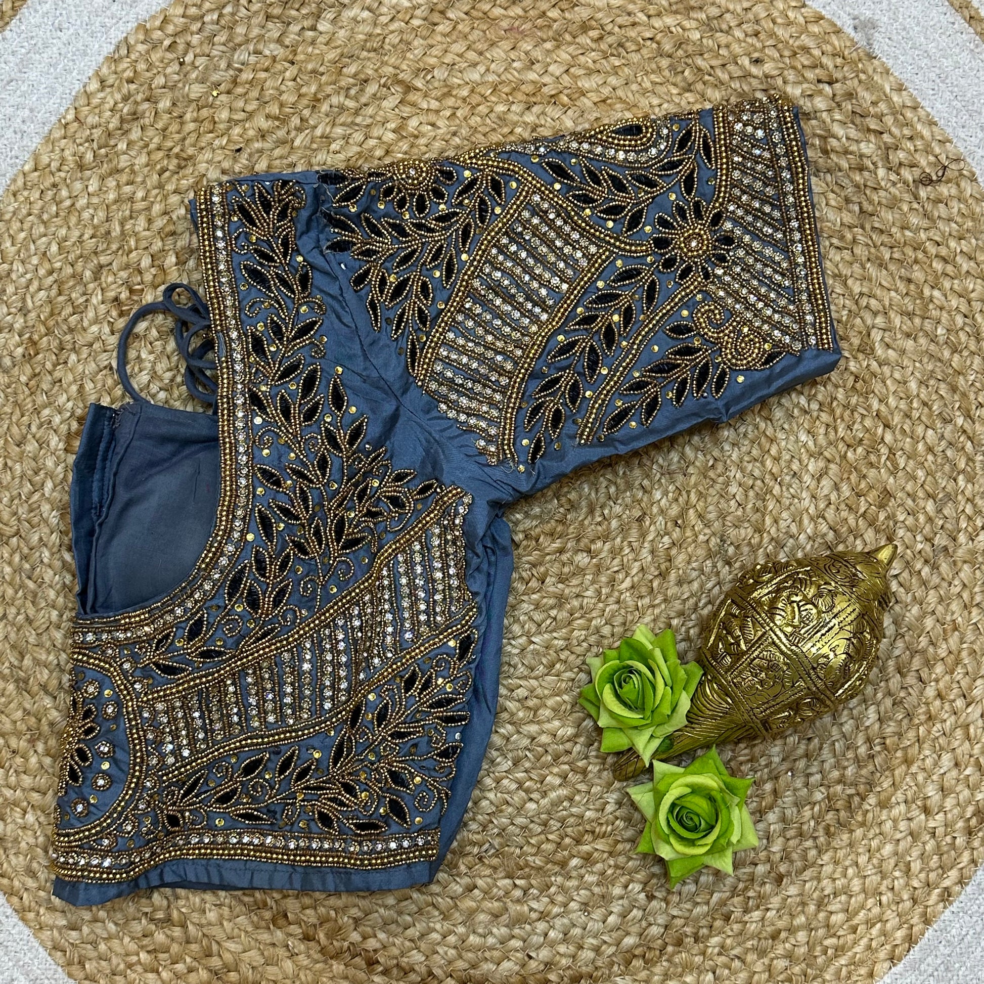 Designed to pair beautifully with your favorite lehenga or sari, this hand-worked delight boasts intricate detailing on one side of the front neck, elegantly draped by your sari on the other. The back neckline and sleeves are elegantly adorned, creating a harmonious look for any occasion! 🎉