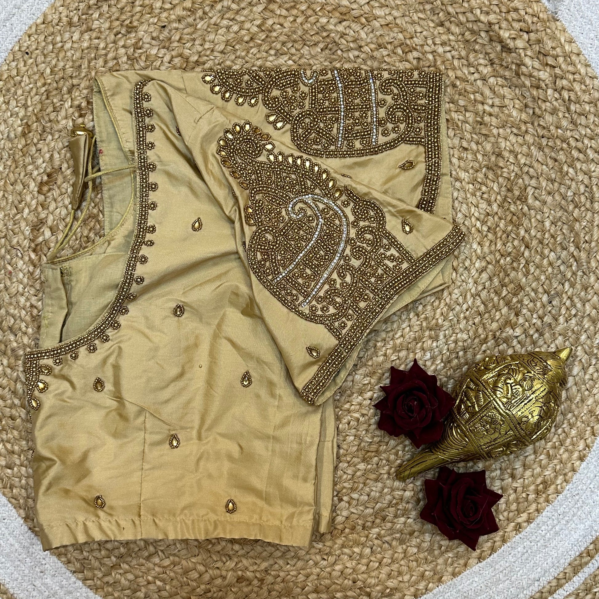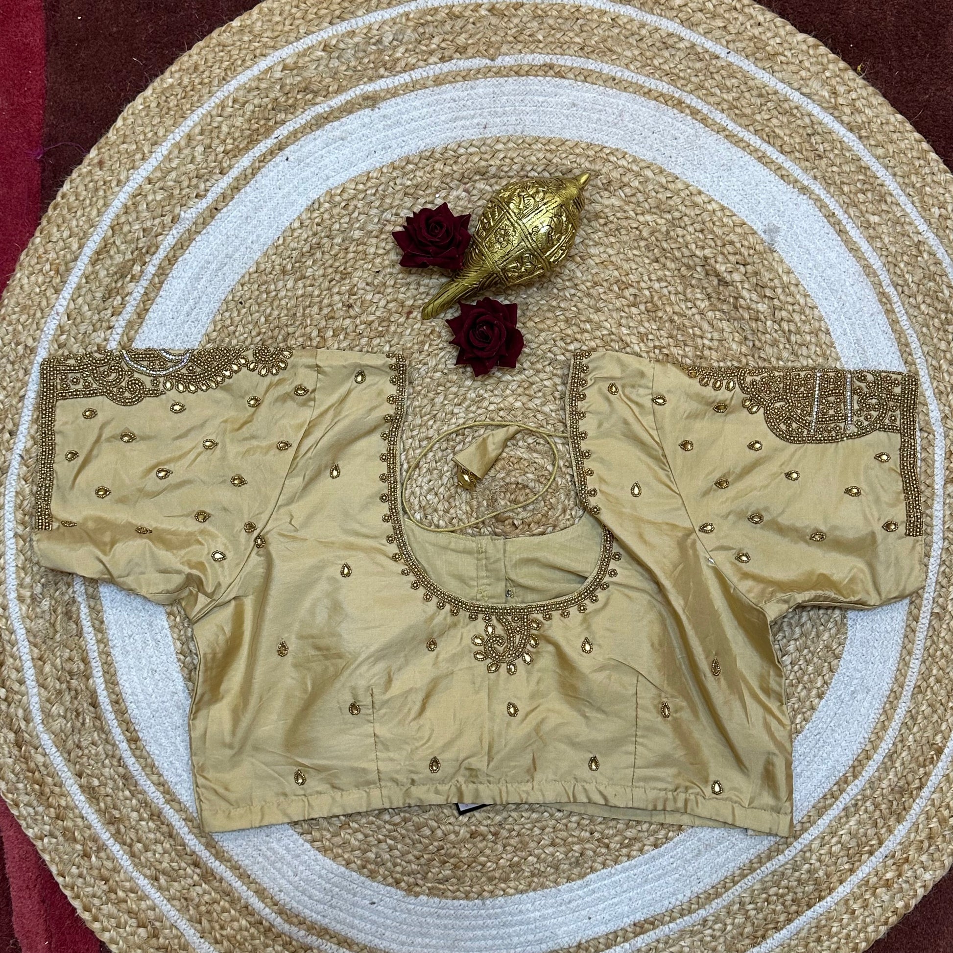 44” Size 14 Aari Worked Sari Blouse Indian Saree Top Light Gold B259