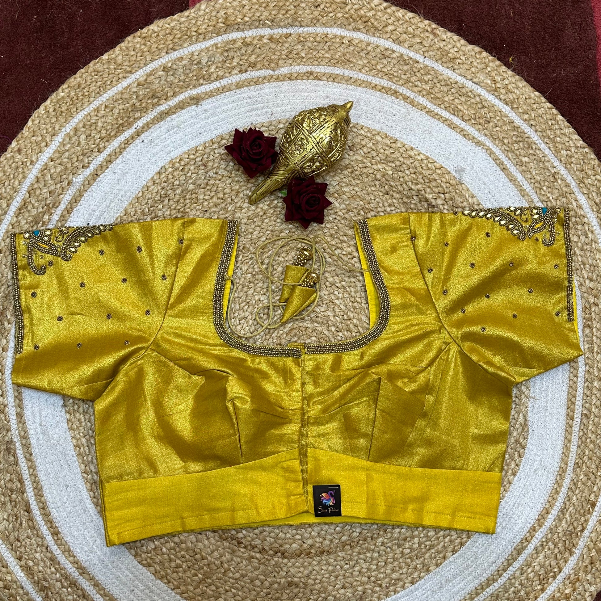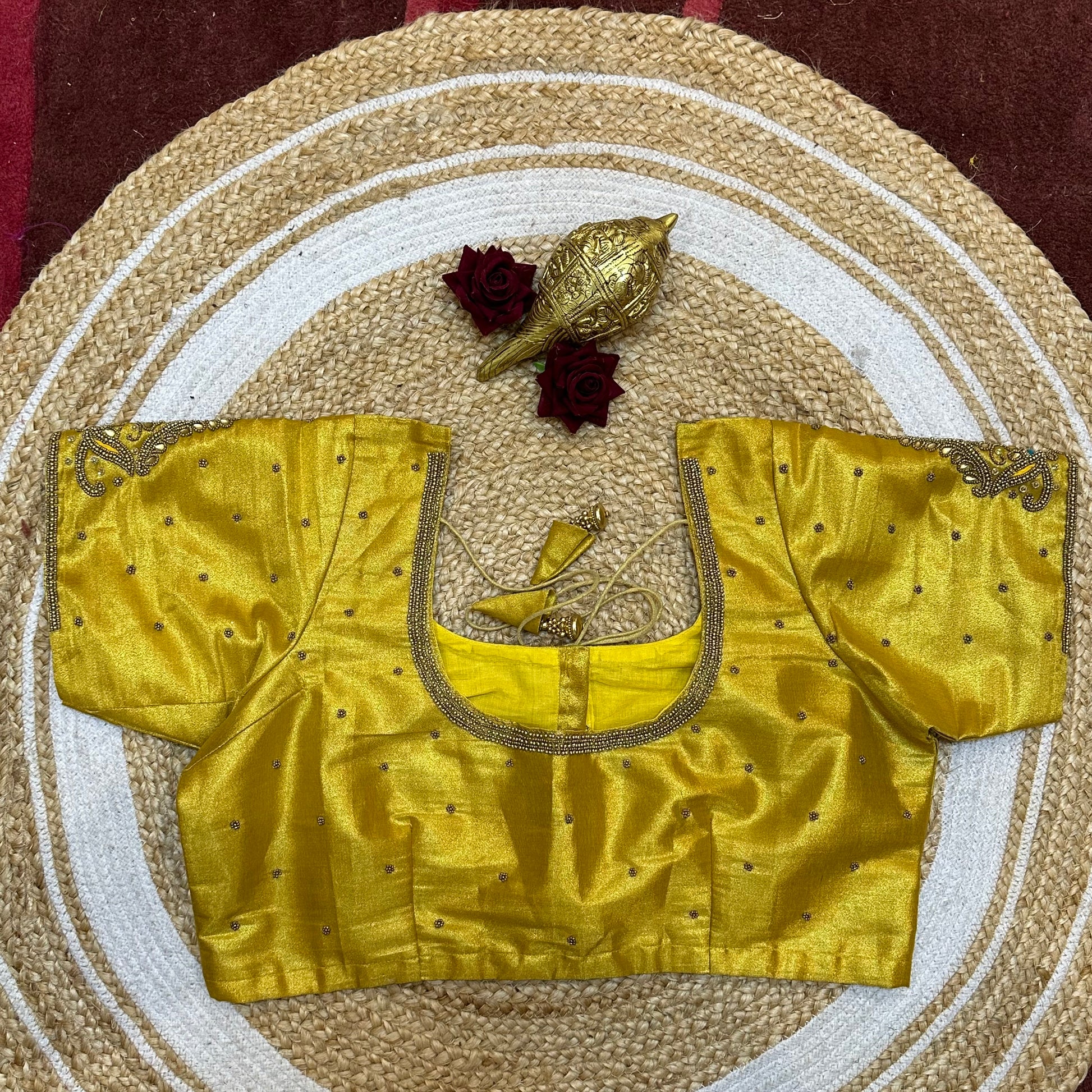 44” Size 14 Aari Worked Sari Blouse Indian Saree Top Silk Yellow B252