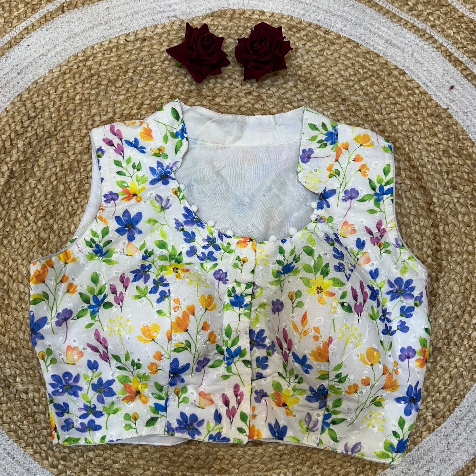 Introducing our breathtaking 38” Indian Medium, Australian Equivalent is about size 8 Indian Sari Blouse, meticulously tailored to perfection. With its chic front opening and adjustable margins to go up to 40 and some blouses even up to 42” (need to be altered by the customer, the margin is there)