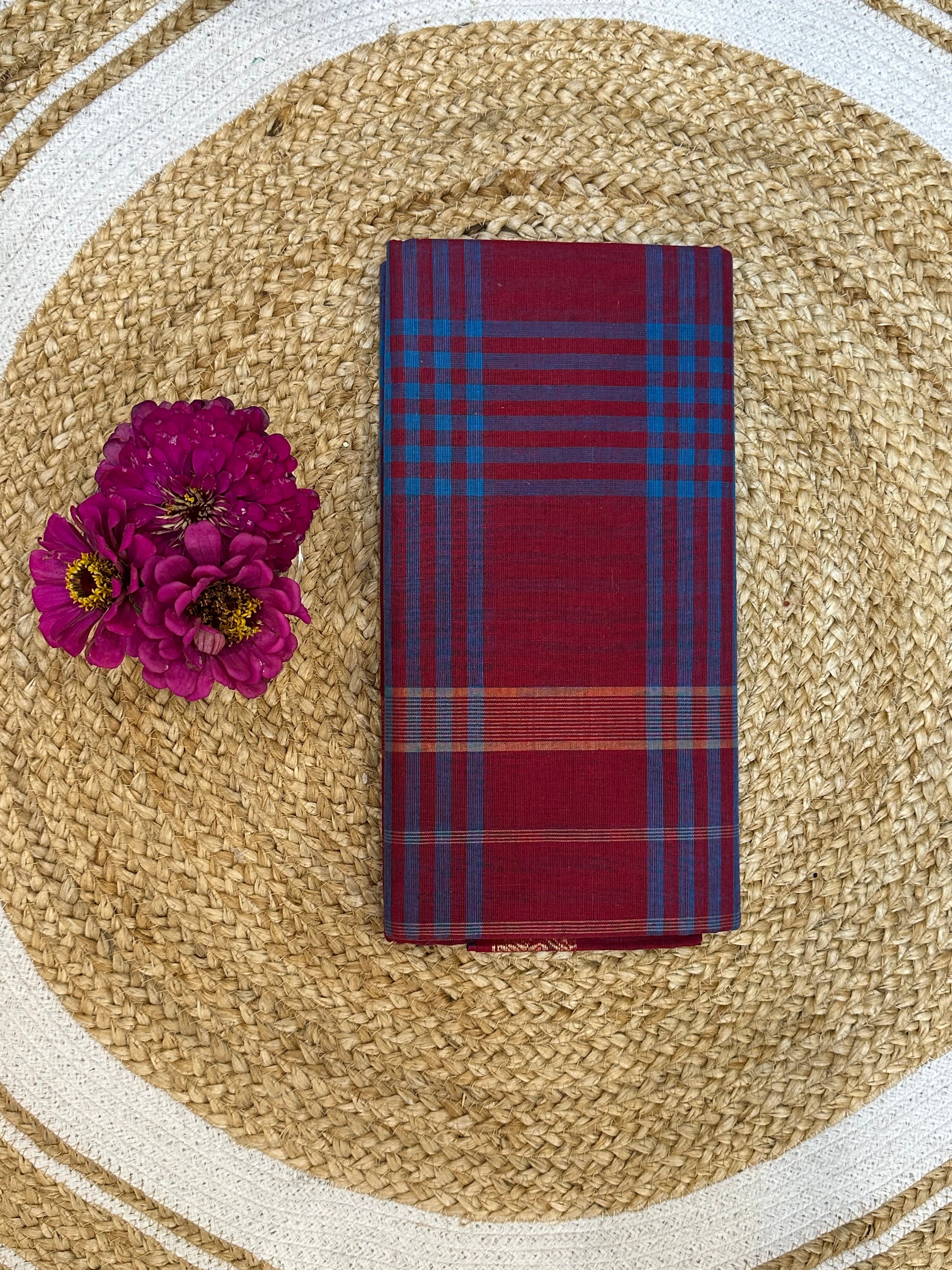 Handloomed by traditional weavers in the Chettinad region (Karaikudi) of Tamil Nadu. |