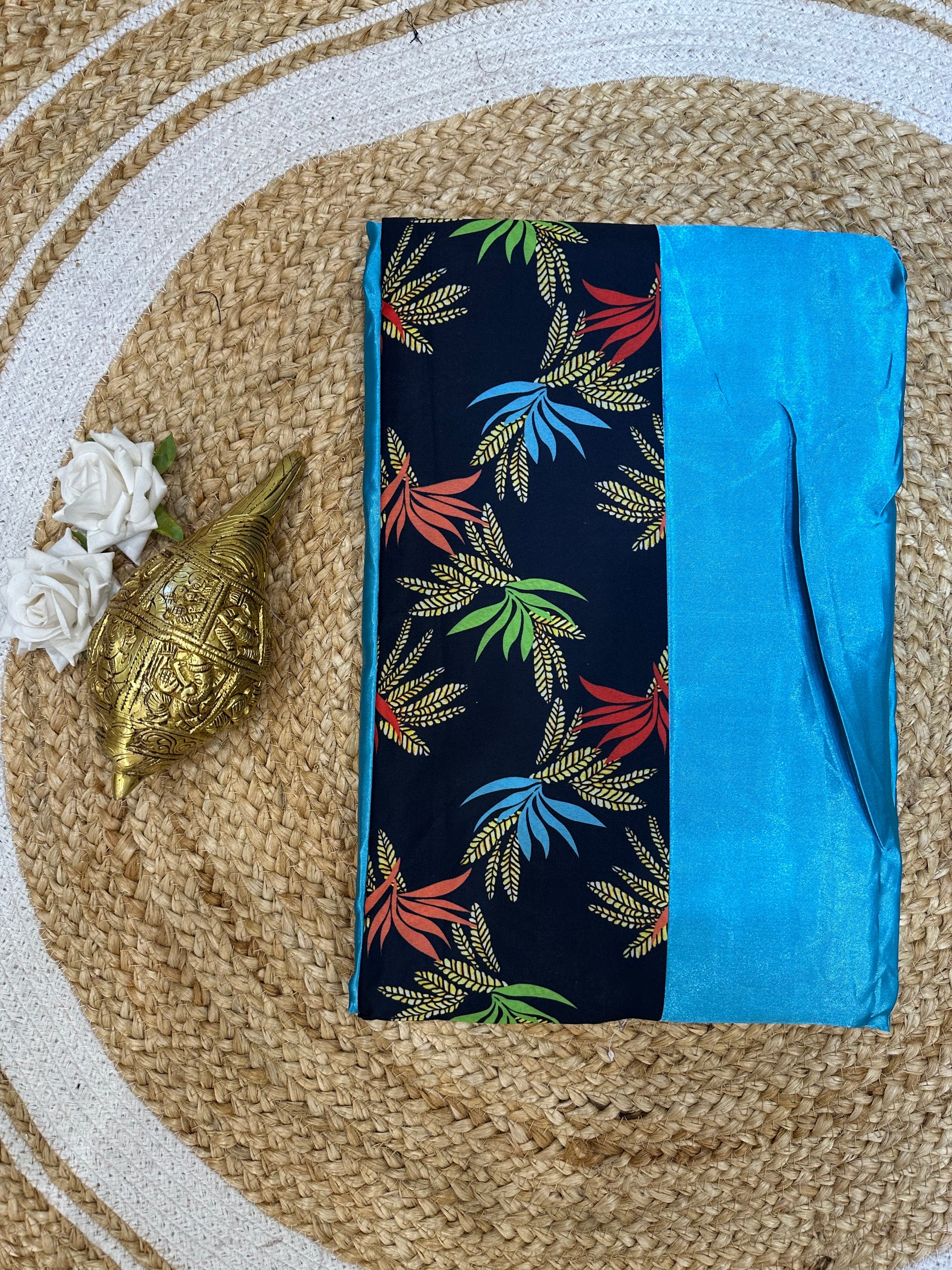 This listing is for a gorgeous plain Satin saree and a digital printed blouse material.
