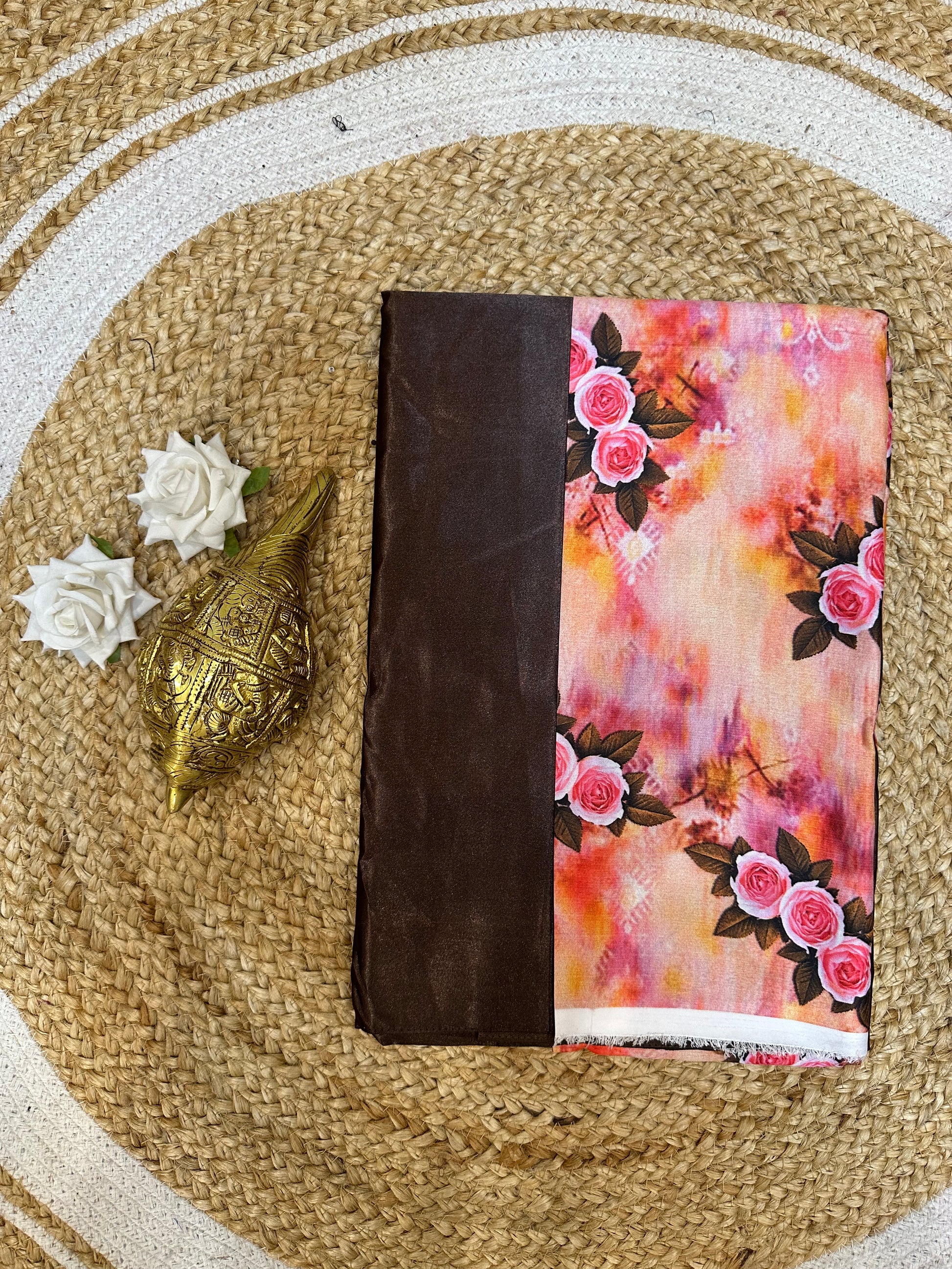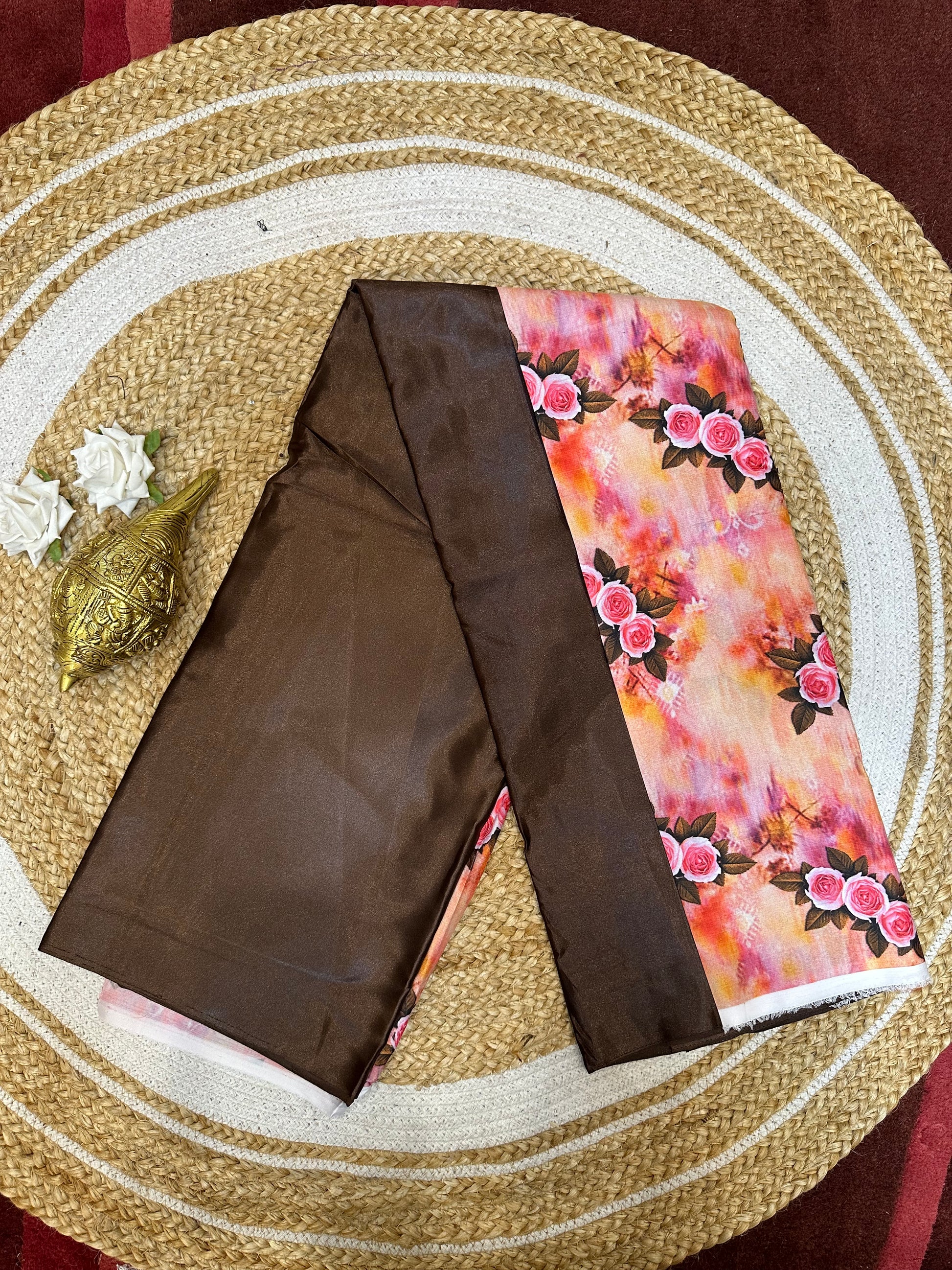 This listing is for a gorgeous plain Satin saree and a digital printed blouse material.