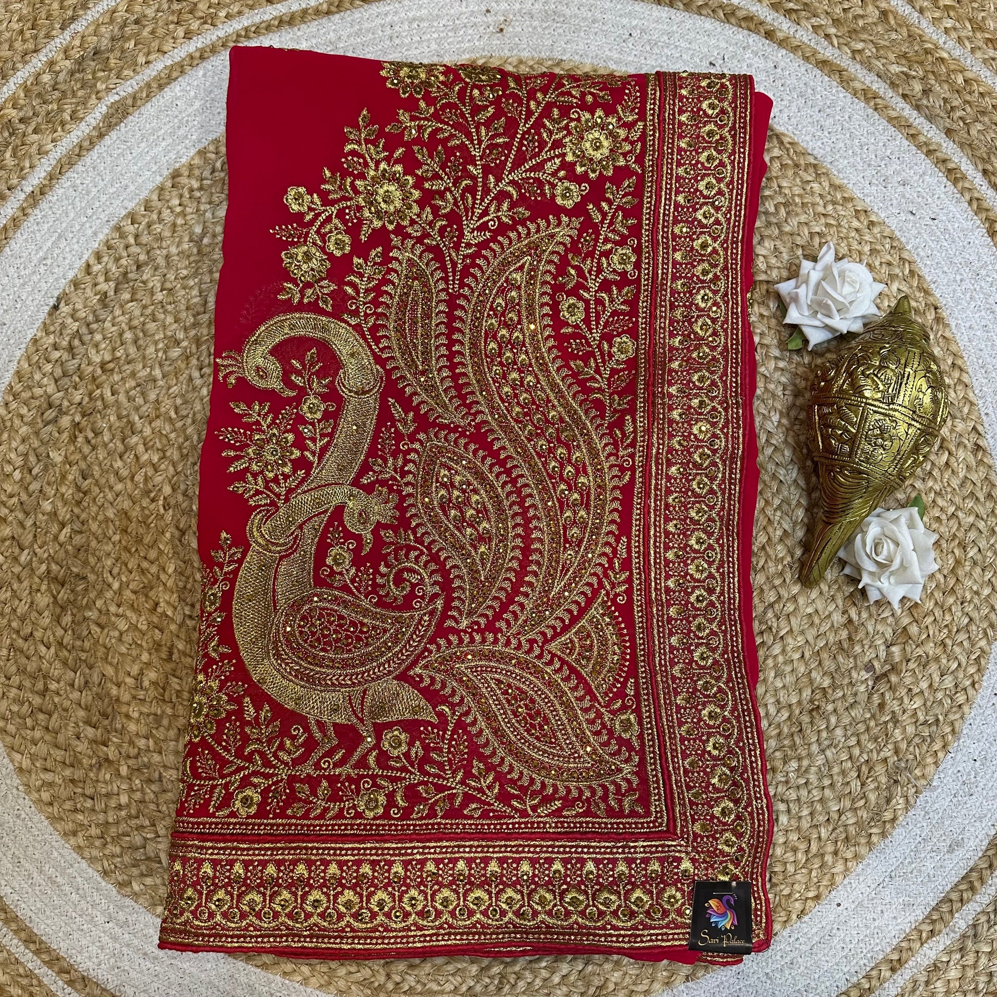 Georgette Sari Indian Fancy Party wear Saree Pink V3