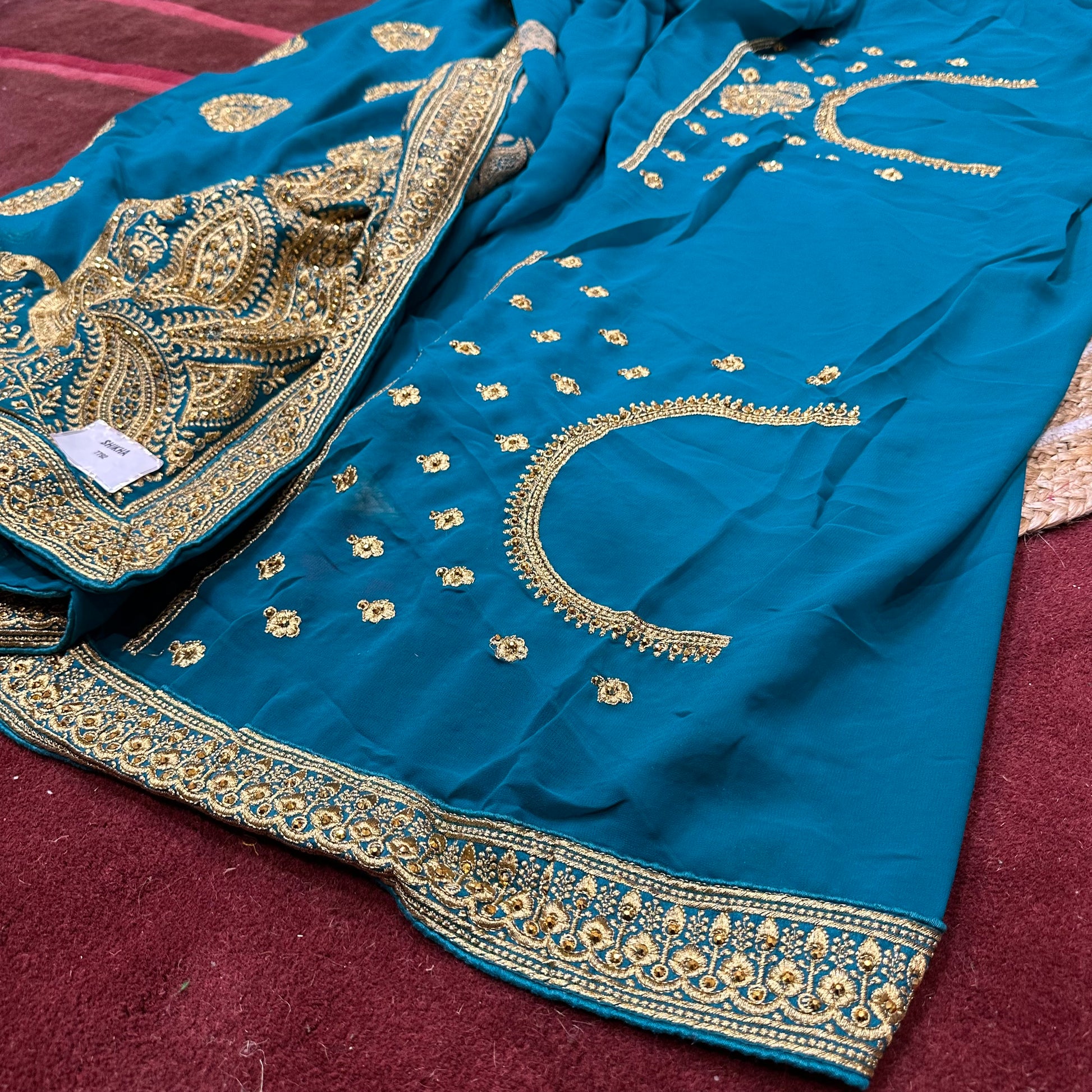 The Blue sari has been opened up to show the blouse material. The other sarees have similar blouse materials