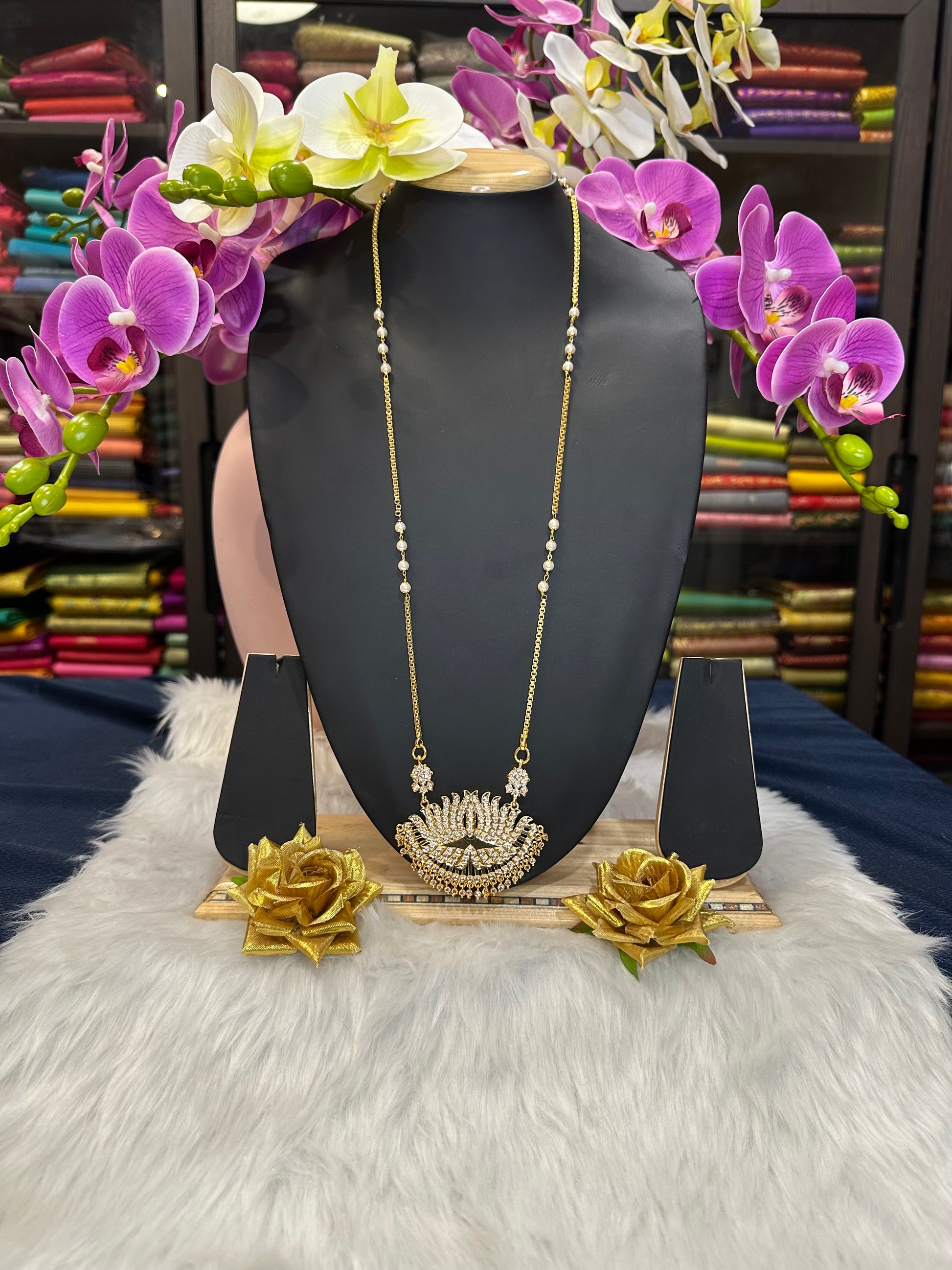 Impon Indian Necklace White Lotus Pathakkam Haram Jewellery N32