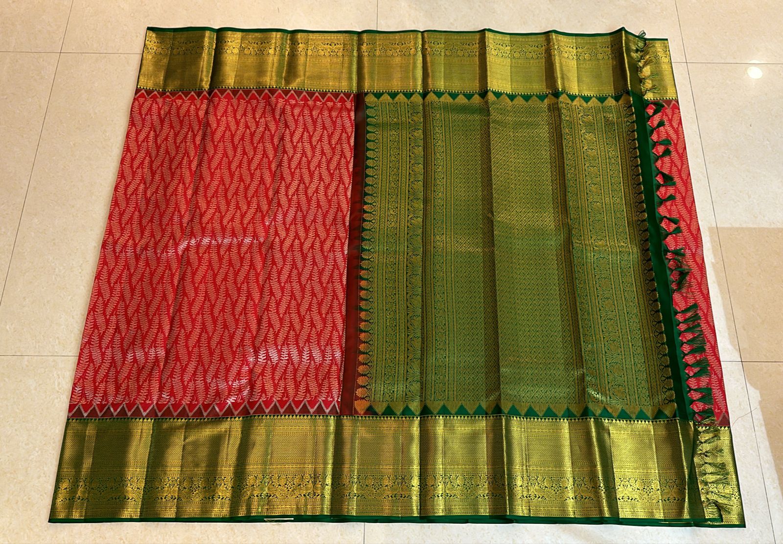 Kanchipuram Pure Silk Saree Red & Green Kanjivaram Sari| SPK150