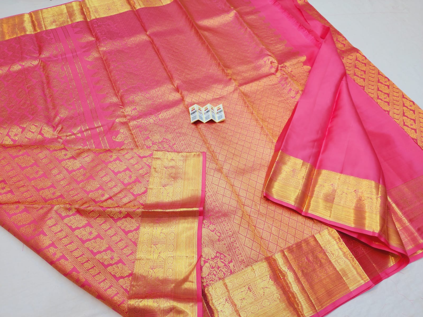 Kanchipuram Pure Silk Saree Pink & Gold Kanjivaram Sari| SPK138