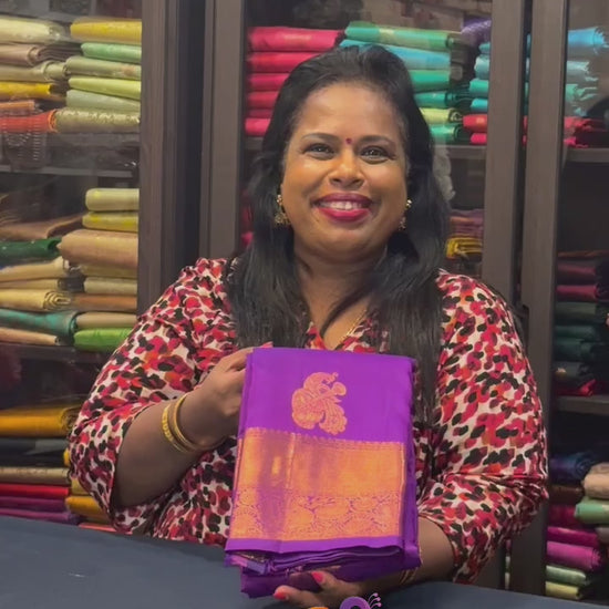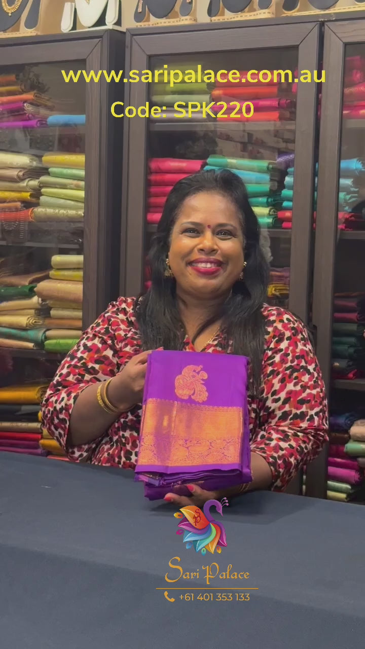 Kanchipuram Pure Silk Saree Purple Kanjivaram Sari SPK220