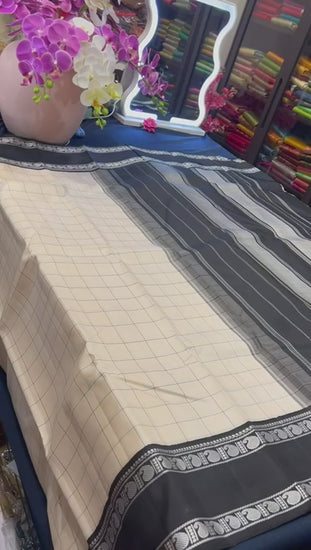 Kanjivaram Handloom Saree Off White & Black Colour | SPK072