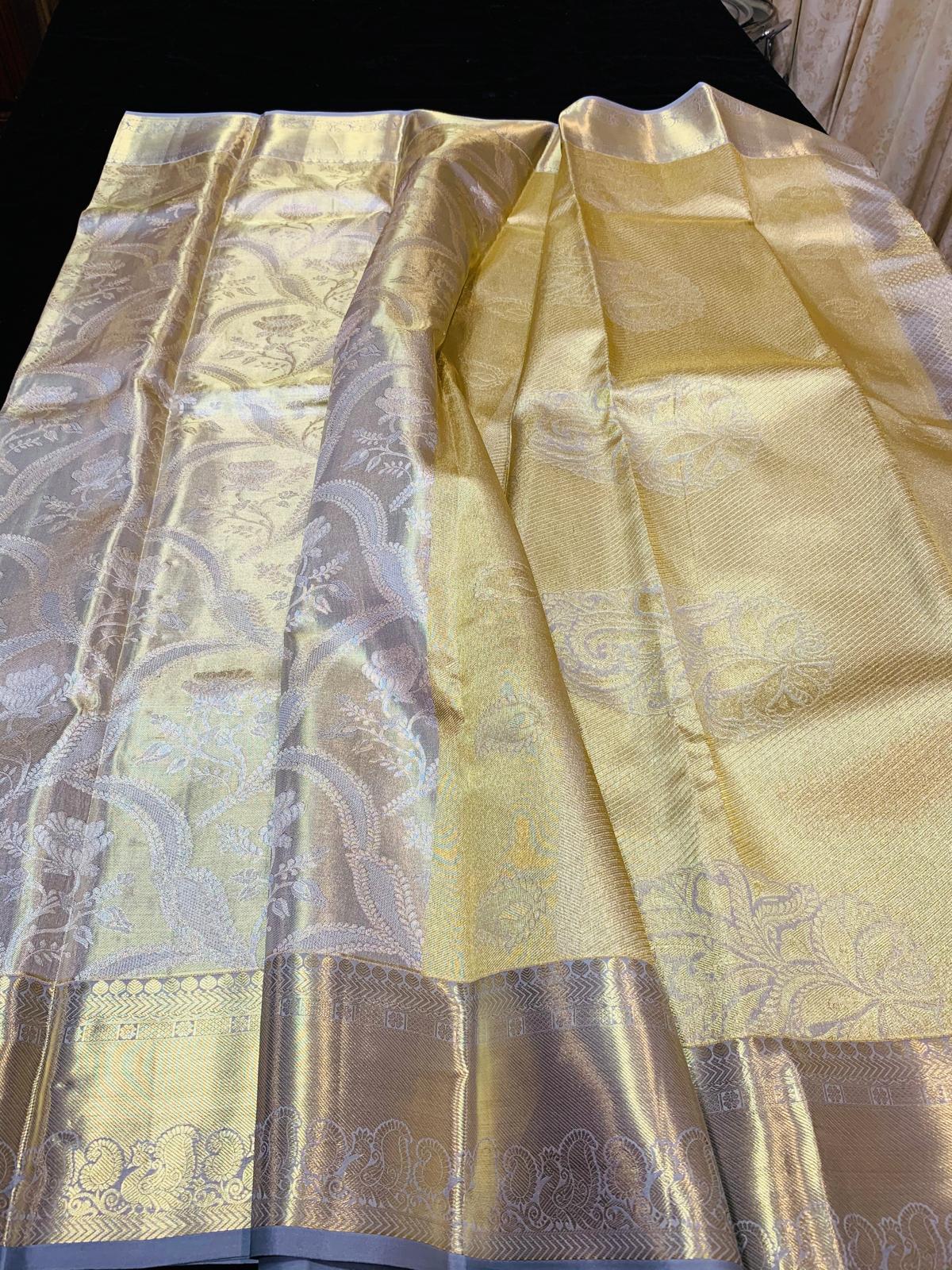 Light Grey Bridal Tissue Kanchipuram Saree | SPK015