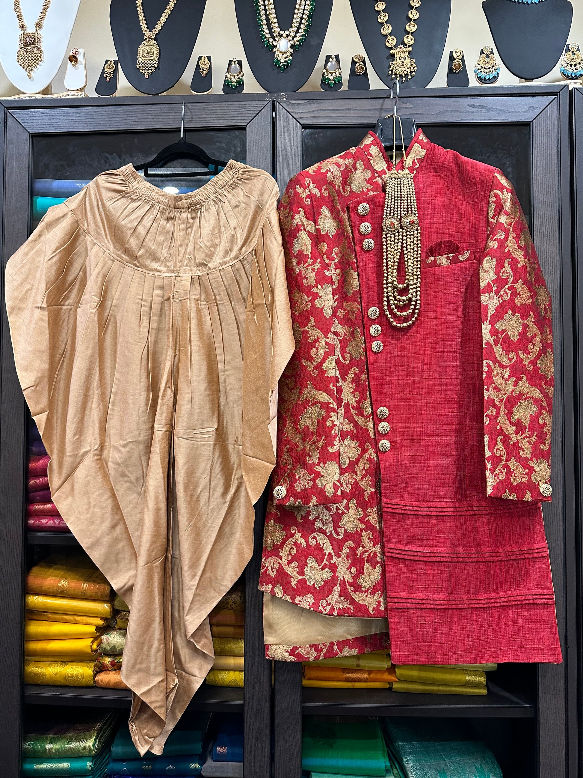36” Small size Men’s Kurta Indian Maroon Sherwani Bollywood outfit M5