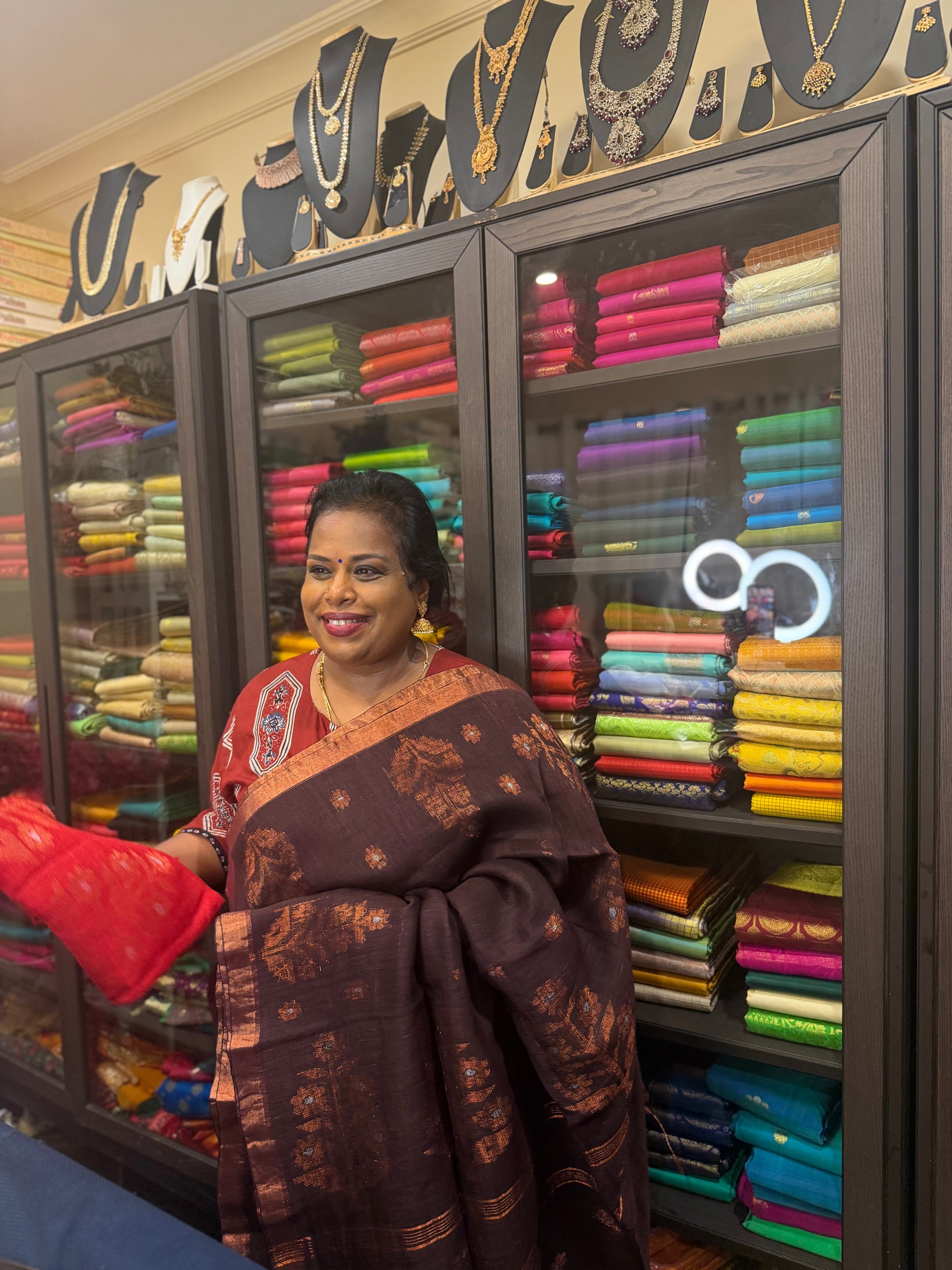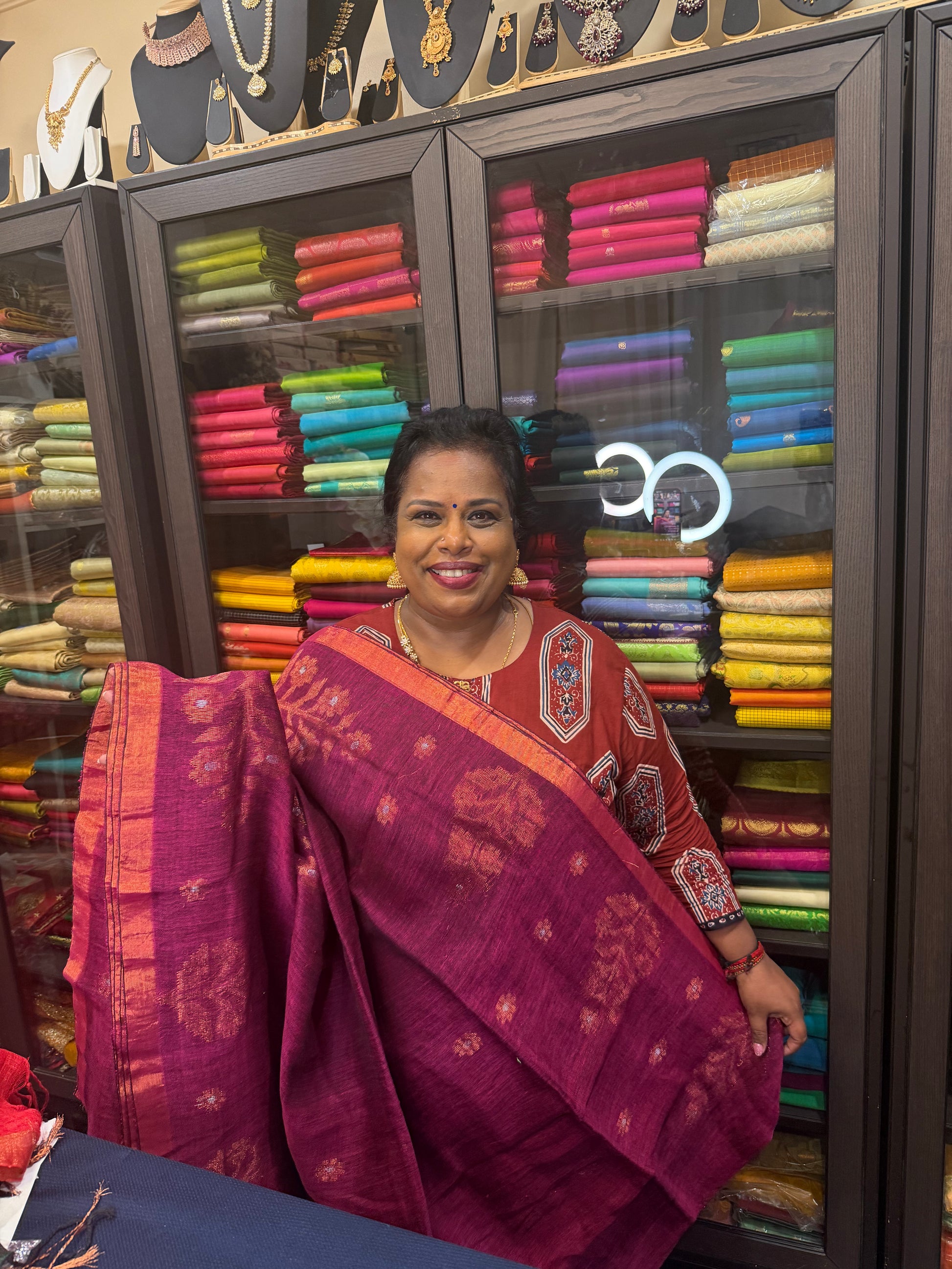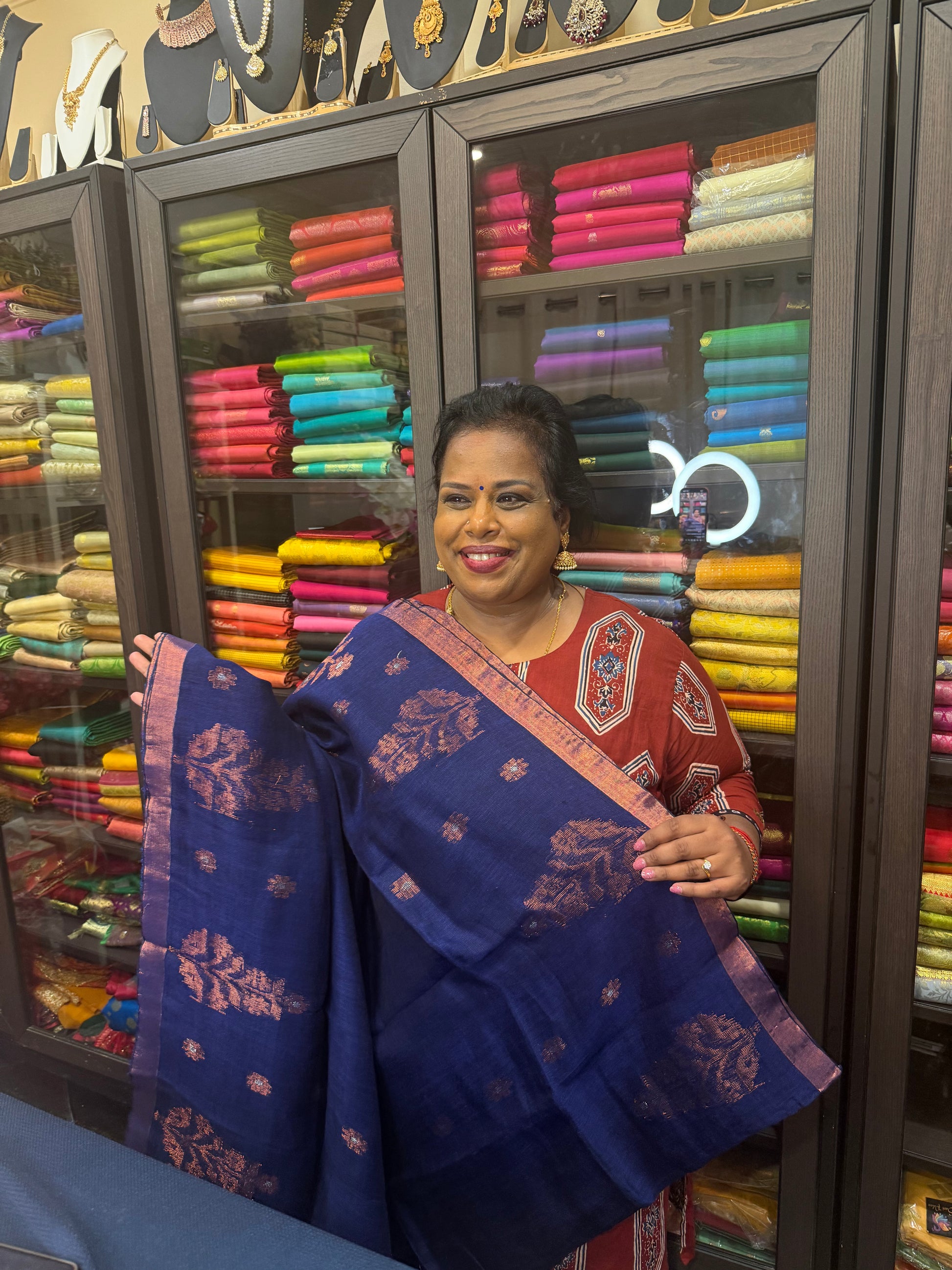 šāØ Embrace elegance and comfort with our stunning cotton/linen sari, beautifully adorned with Copper colour thread work! Perfect for any occasion, this sari is not only super stylish but also easy to drape, making it a must-have addition to your wardrobe!