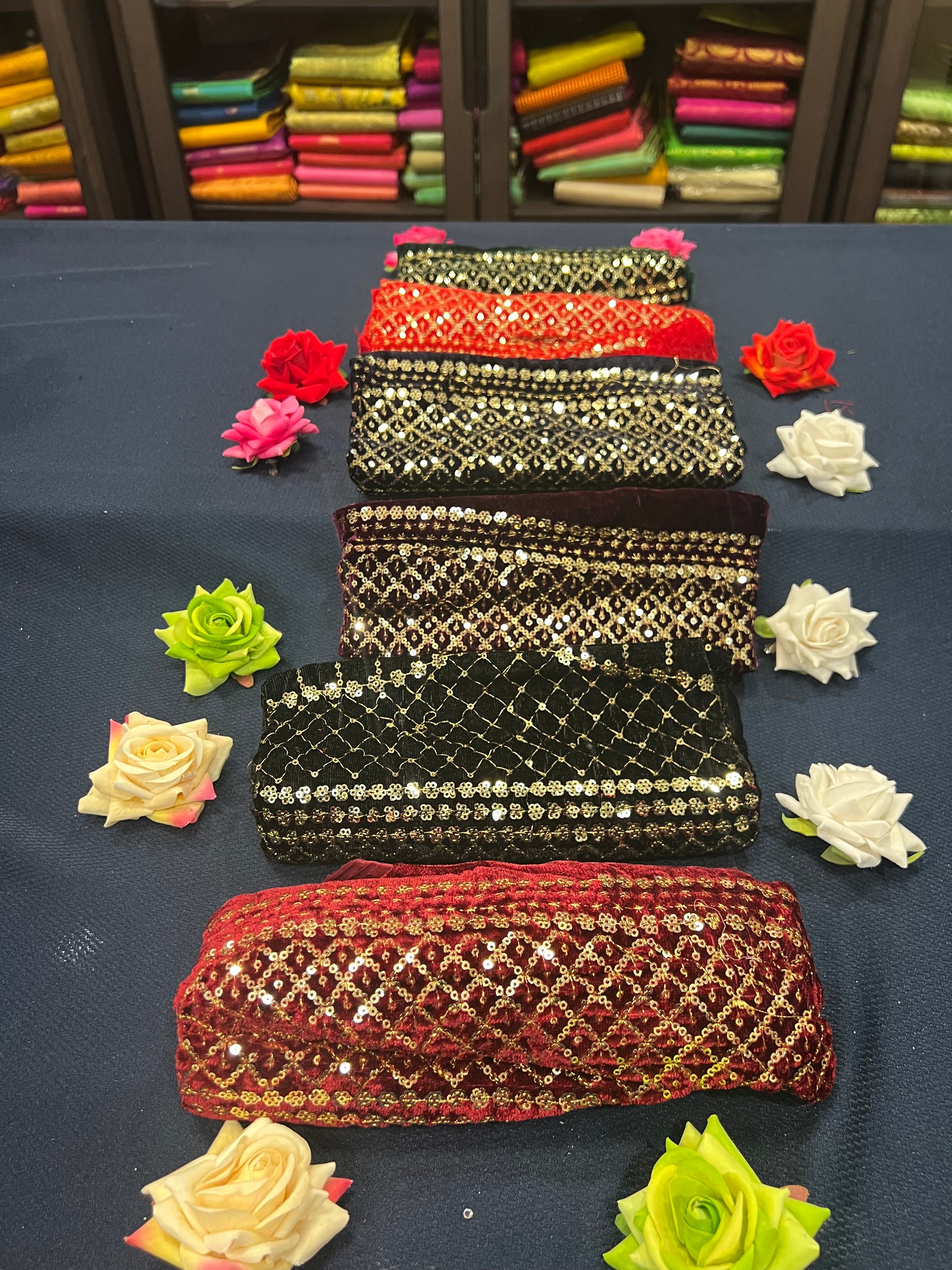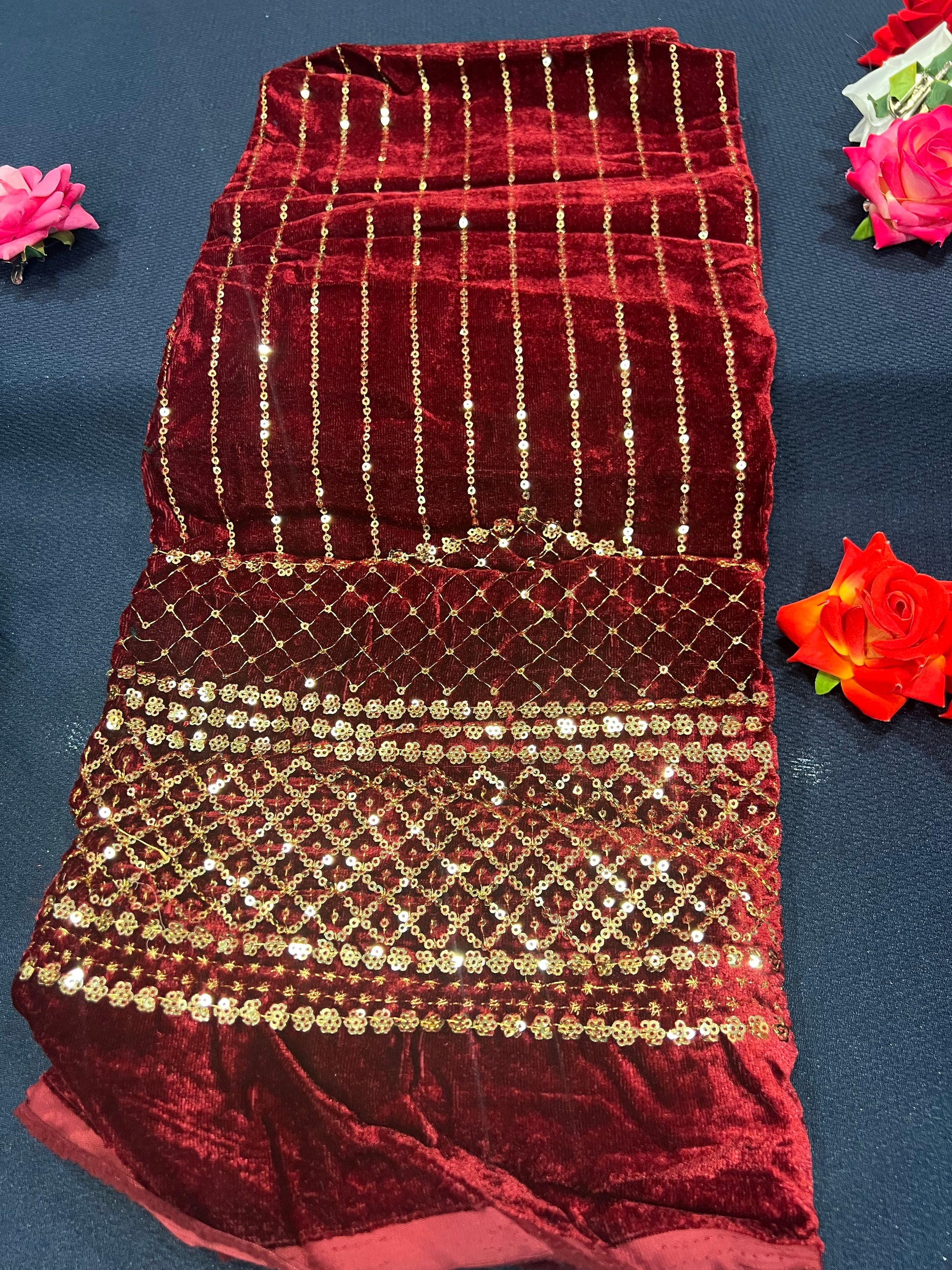 🌟✨ Elevate your wardrobe with our stunning Red colour Velvet Blouse Material! 🌿💚 This gorgeous 1-meter piece features exquisite gold sequins and intricate embroidery work, making it a must-have for any fashionista.