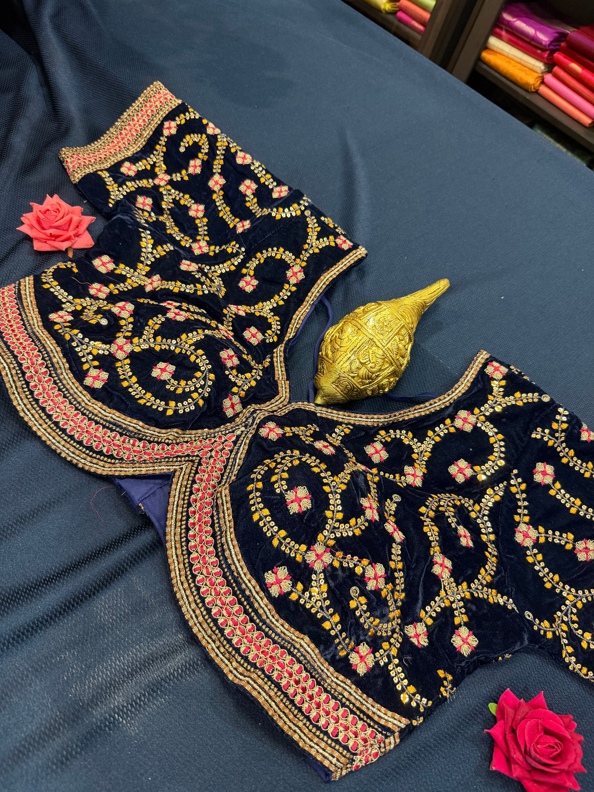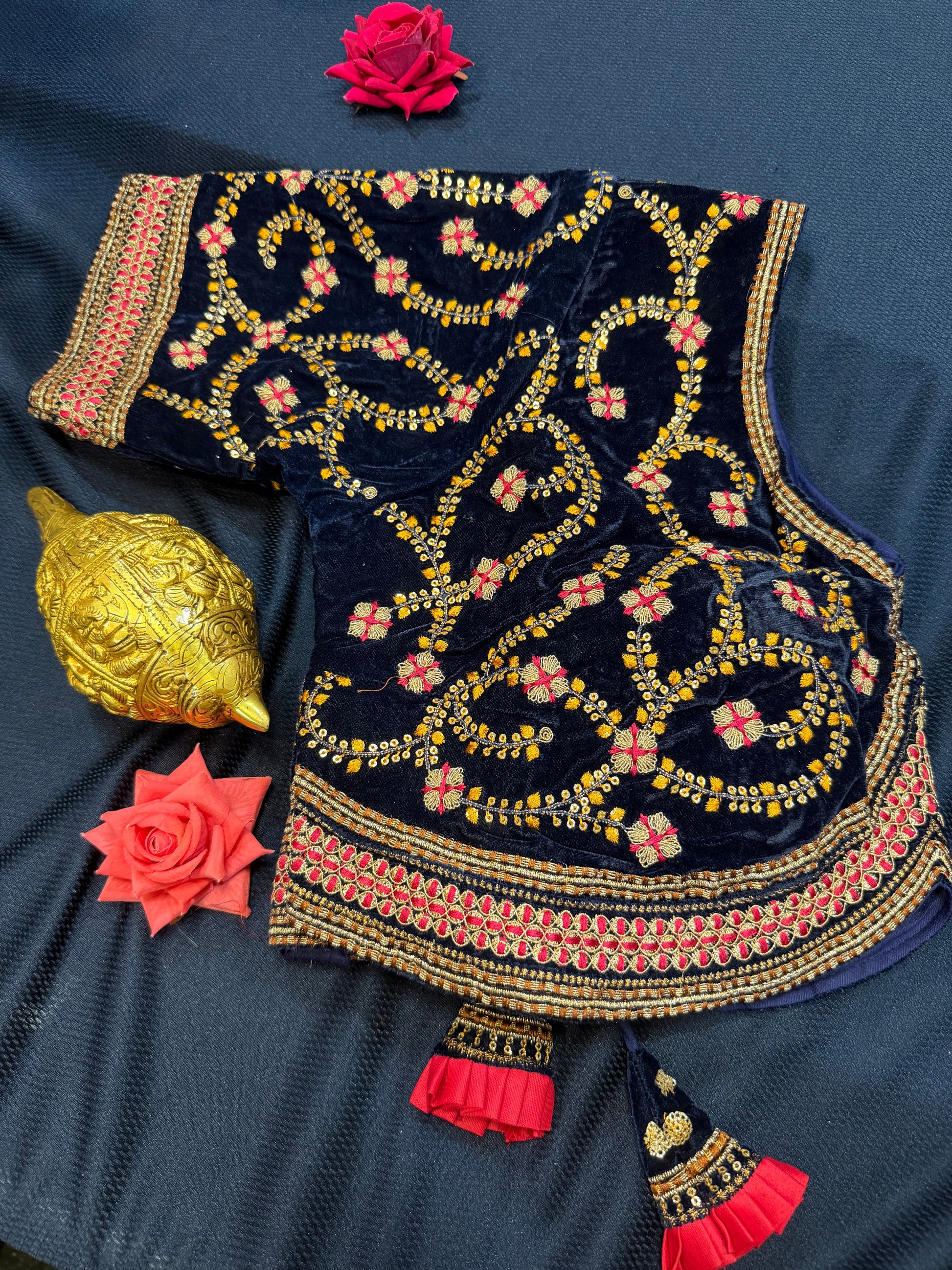 42” Navy Blue Velvet Sari Blouse Indian Top Choli B2