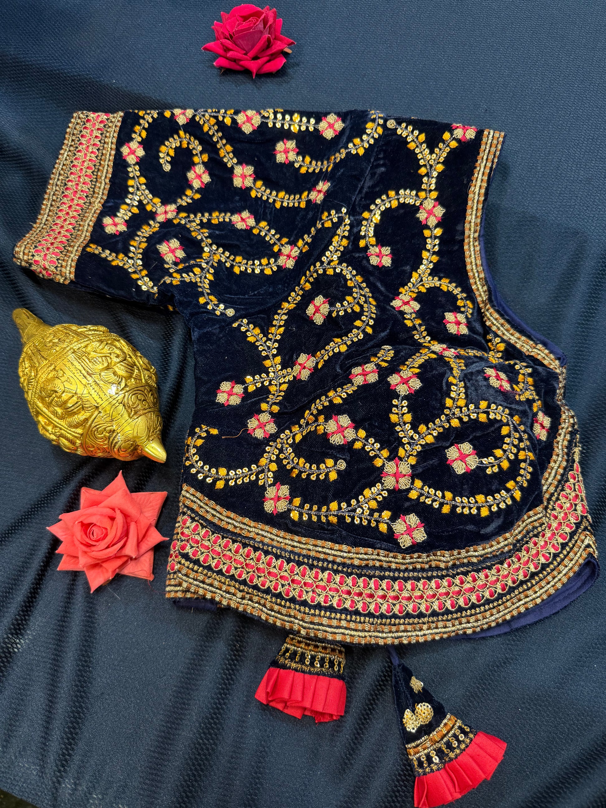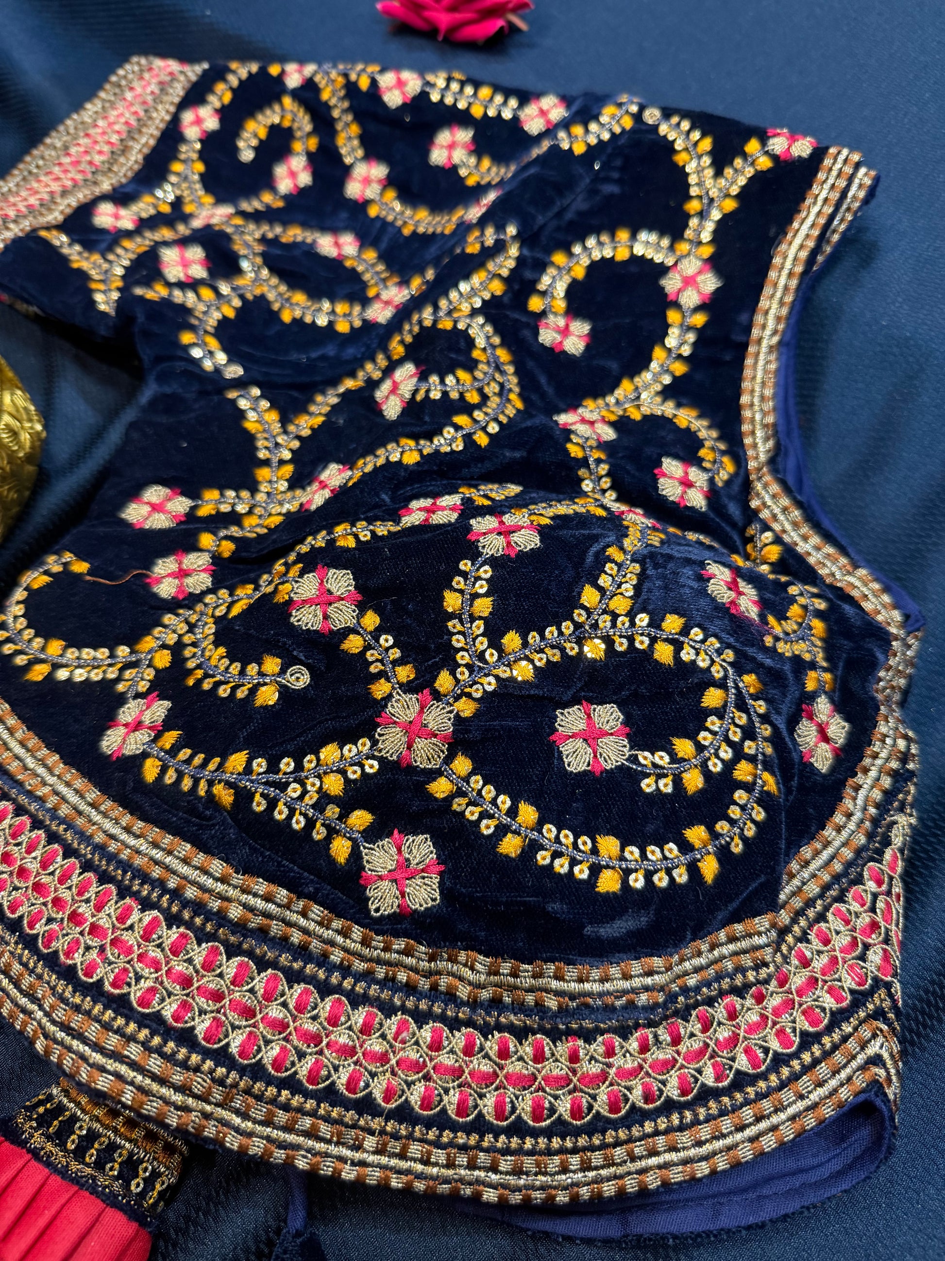 📸✨ Introducing our stunning 42” size Indian Sari Blouse! Crafted from luxurious Navy Blue velvet, this beauty features a chic back opening and an adjustable margin, allowing you to customize the fit just for you. Perfectly designed to pair with your favorite lehenga or sari, it’s a must-have for your festive wardrobe! 💖